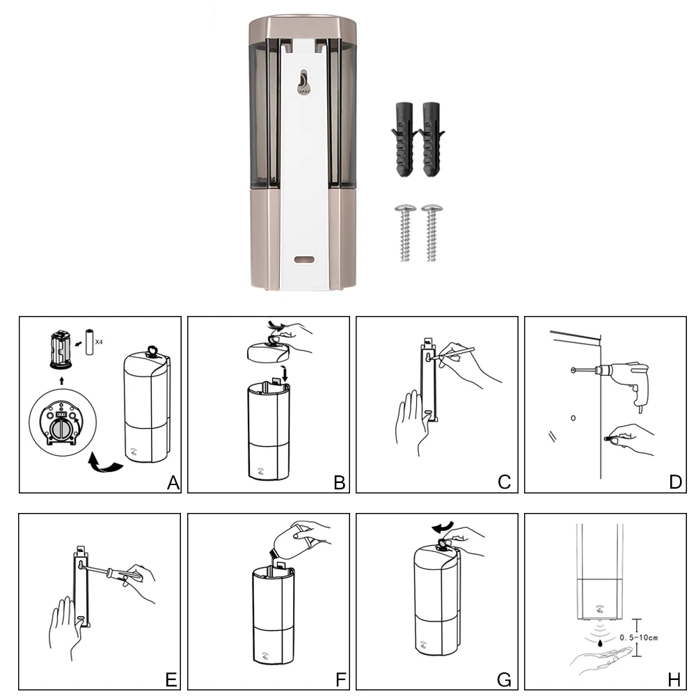 Однокамерный диспенсер для жидкого мыла изготовлен из нового высококачественного АБС-пластика и поликарбоната, который является прочным, компактным и гладким. Автоматический дозатор мыла использует инновационную технологию инфракрасного датчика, отсутствие касания, отсутствие распространения микробов, очень безопасный и здоровый. Идеально подходит для отеля, торгового центра, офисного здания, ванной комнаты, туалета, школы, детского сада, банков и других общественных мест.