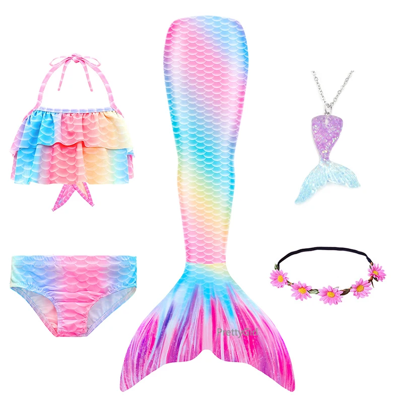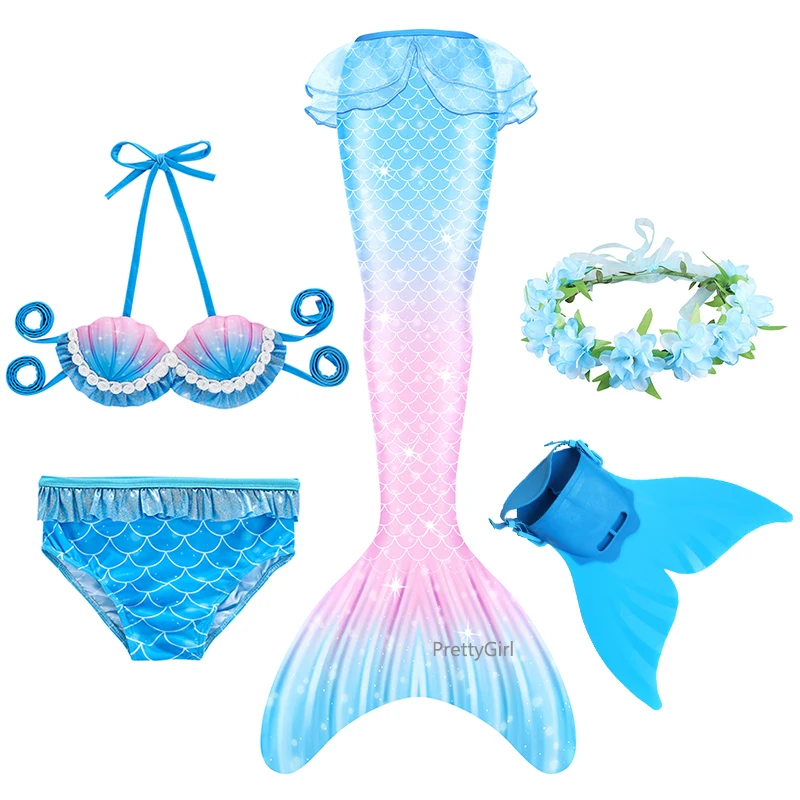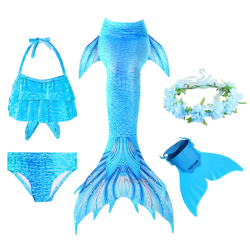 5 шт.: 1 платье с хвостом русалки + 1 бюстгальтер + 1 шорты + 1 гирлянда + 1 ластовица Monofin