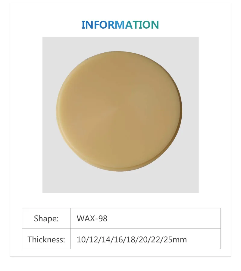 1 шт./лот стоматологический воск блок лаборатории CAD CAM изготовление зубных протезов восковой диск на окружающую среду 98 мм * 10/12/14/16/18/20/22/25 мм кремово резьба воск блок