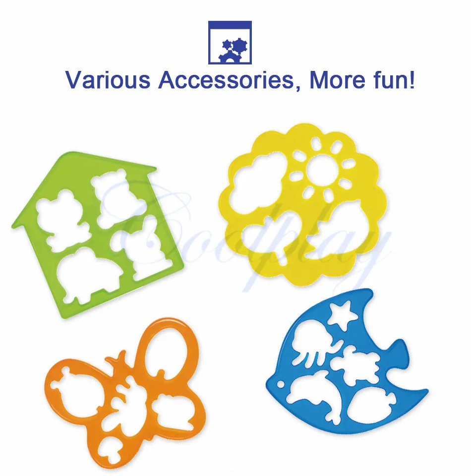 1x коврик для рисования 8x EVA марки 4x Пластиковые Шаблоны 4x Пластиковые печати 4x ручек (1 большая ручка; 2 маленьких ручки; 1 кисть) 1 лоток 1x Инструкция по эксплуатации