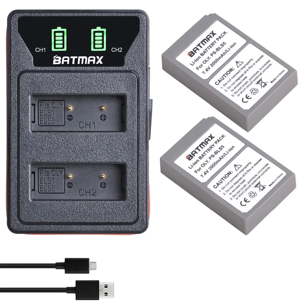 Batmax PS-BLS5 PS BLS5 PSBLS5 батарея + Новый светодиодный USB двойное зарядное устройство с портом типа C для Olympus OM-D E-M10 ручка E-PL2 E-PL5 E-PL6 E-PL7 E-PM2 стилус 1E-M10 II
