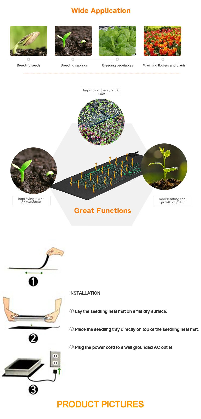 Особенности: Отлично подходит для прорастания семян, рептилий и пивоварения. Для лучшего выращивания овощей, трав и цветов. Более прочная нагревательная проволока и более толстая Многослойная конструкция. Согревает корневую площадь 10-20 ℃ (50 ℉-68 ℉) выше комнатной температуры. Увеличивает успех саженцев и черенков, прочная конструкция. Обеспечивает тепло в области укоренения для более быстрого прорастания и укоренения. Технические характеристики: Материал: ПВХ Номинальная мощность: 18 Вт Номинальное напряжение: 110 В/220 В Вилка: вилка США/ЕС Толщина: 2-3 мм (appr.) Длина кабеля: 180 см/70,87 ''(appr.) Размер: 52X24 см/20,47 'X 9,45 ''(appr.) Инструкции для Применение: Поместите термомат на твердую, хорошо осушенную поверхность. Не позволяйте сидеть в стоячей воде. Подключите тепловой коврик к розетке 110/220 вольт. Этот тепловой коврик предназначен для увеличения площади укоренения appr. 10-20 ℃ (50 ℉-68 ℉) выше комнатной температуры. Установите поддоны для растений, горшков или контейнеров на тепловом коврике. Для более теплой корневой зоны температуры поместите термомат на изолированную поверхность вместо холодного пола. Использование купола влажности помогает сохранить влагу и Помогает растениям быстрее зародышаться и зародиться. Посылка включает в себя: 1 х Коврик для рассады 1 х адаптер штепсельной вилки США/ЕС (Поднос для рассады не входит в комплект)