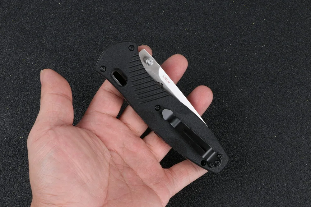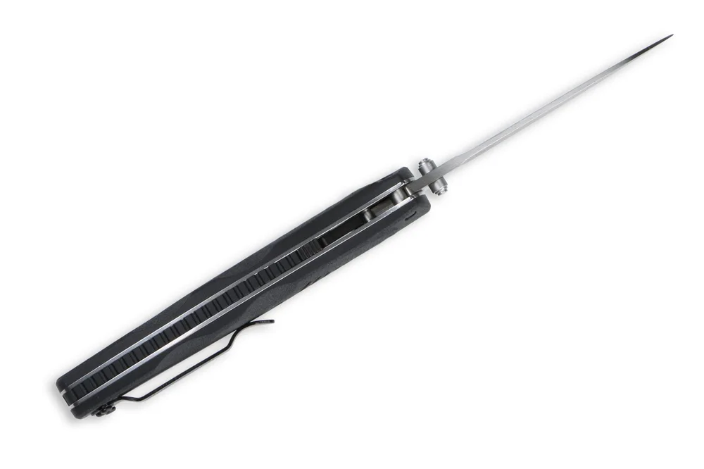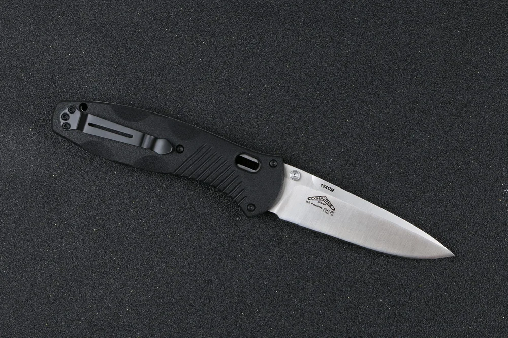 Общая длина: 8,35 " (212 мм) Длина лезвия: 3,60 " (91 мм) Лезвие Толщина: 0,12 " (3 мм) Материал лезвия: отметка 154 см лучше для перепродажи Уровень защиты: 57-58HRC Стиль лезвия: точка падения Лезвие для измельчения: на плоской подошве Отделка: сатин Край Тип: однотонный Длина ручки: 4,75 " (121 мм) Материал ручки: нейлоновое волокно Valox, снижение веса стального вкладыша Вес ножа: 127 г
