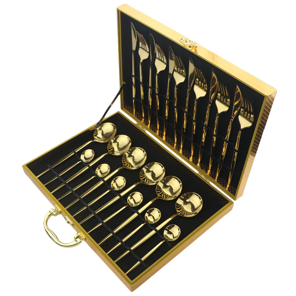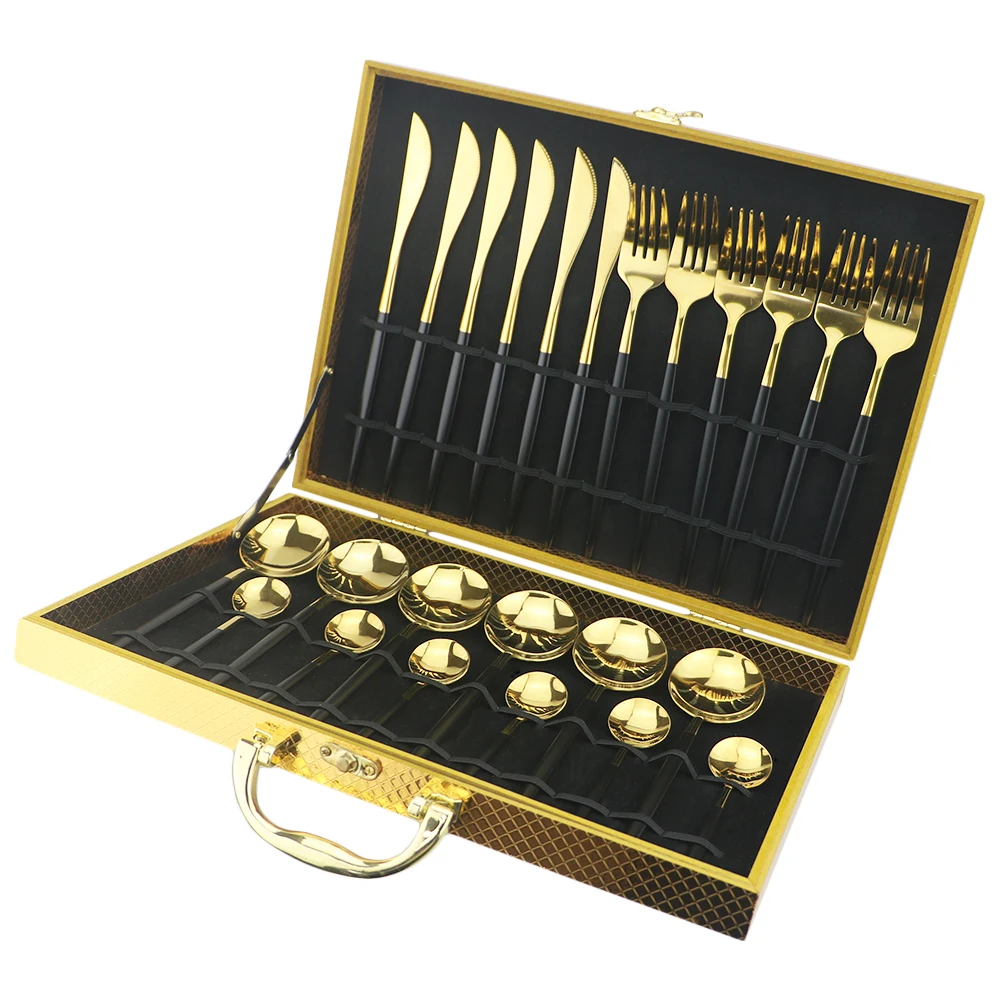 Набор золотых столовых ложек из нержавеющей стали 304, 6 шт., кофейная/чайная ложка, столовая посуда, домашний кухонный набор серебряных изделий, Прямая поставка