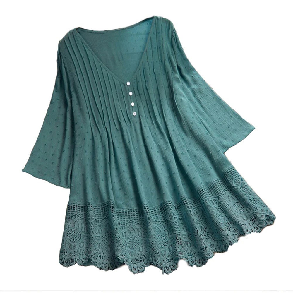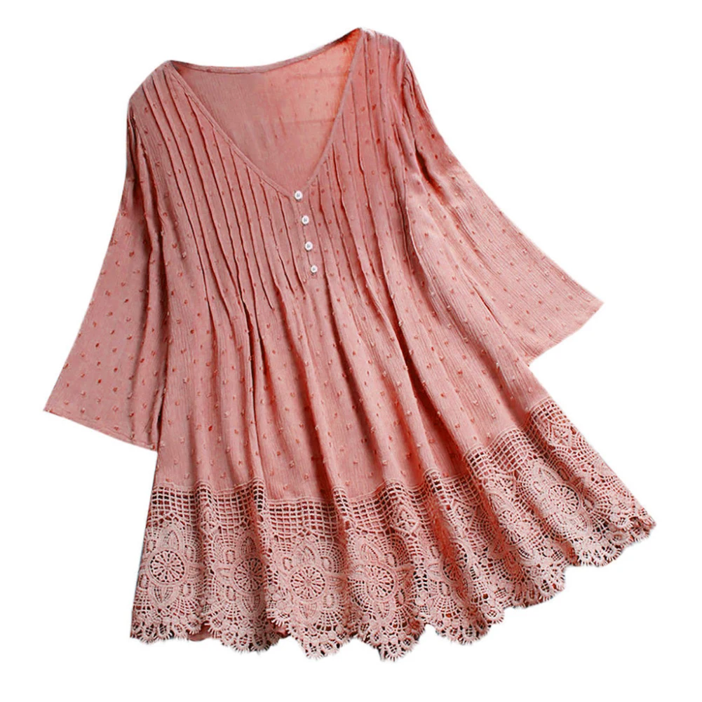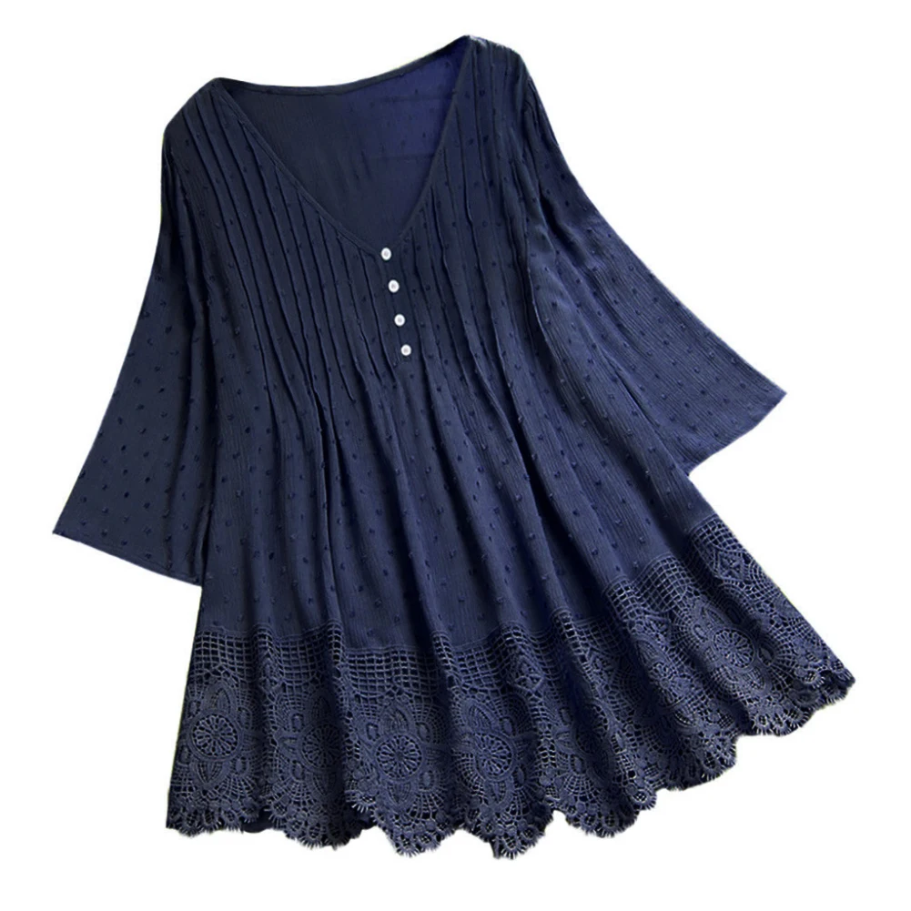 С вышитым цветочным кружевным подолом и узором в горошек, привлекательный и стильный.
