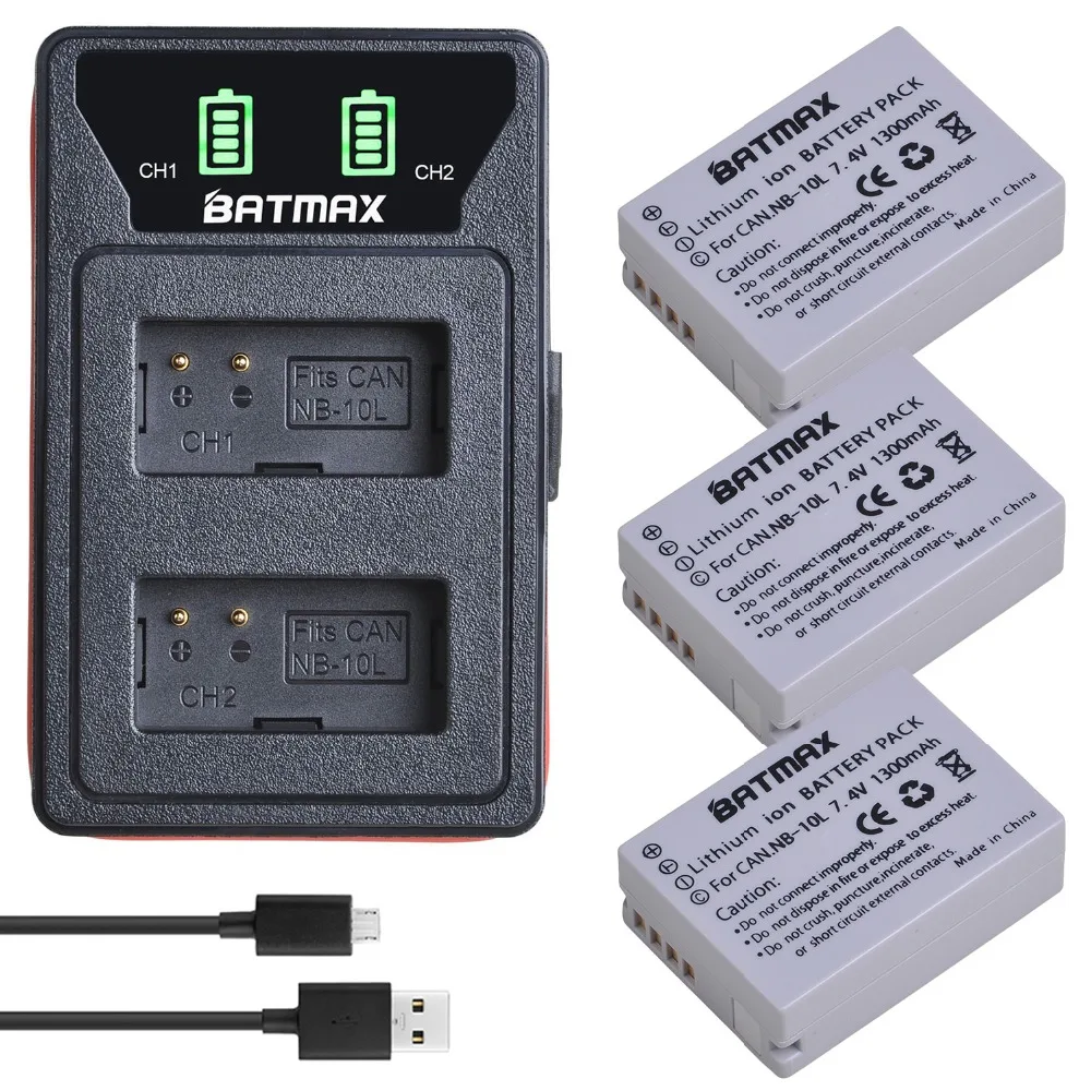 Batmax NB-10L NB10L аккумулятор камеры + Новый светодиодный двойной зарядное устройство с портом типа C для Canon G1X G15 G16 SX40HS SX50HS SX60HS SX40 SX50 SX60 HS