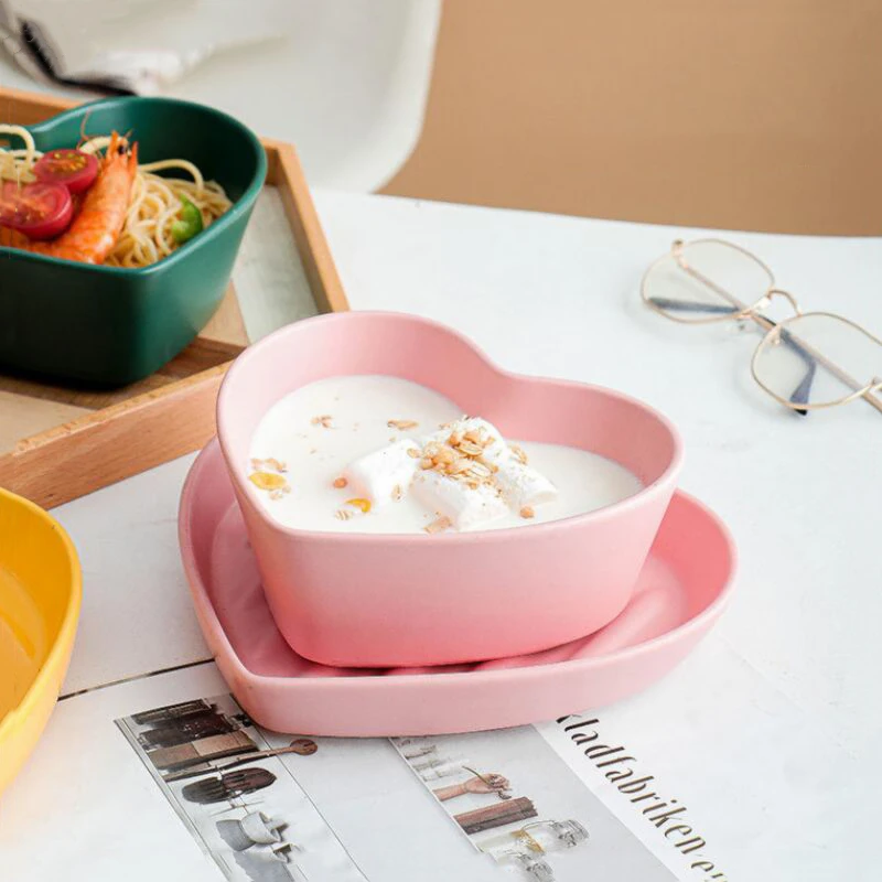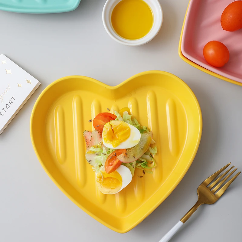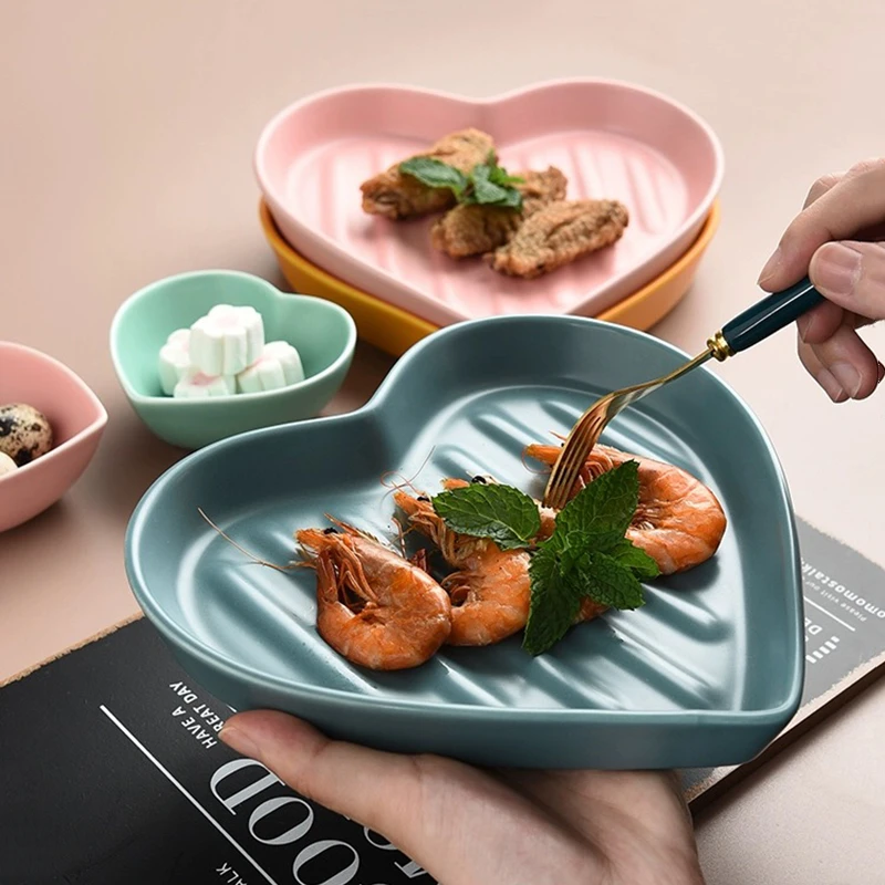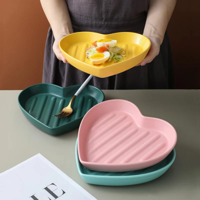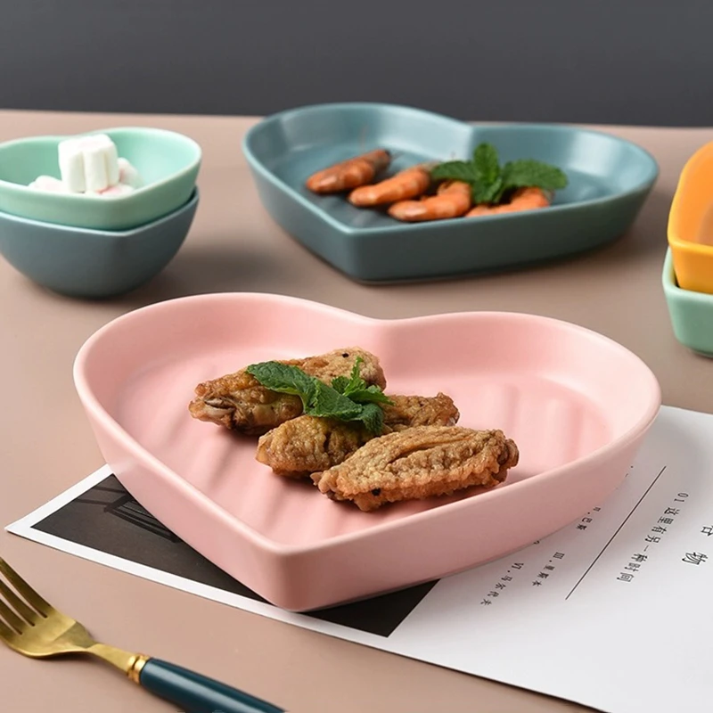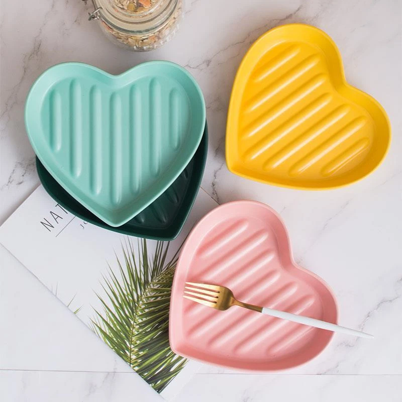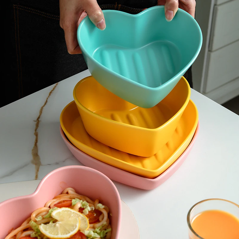 Европейская посуда в форме сердца Материал: керамика Процесс: Цветная глазурь Стиль: тарелка в форме сердца/чаша в форме сердца Цвет: розовый/светильник зеленый/желтый/темно-зеленый Область применения: микроволновая печь/посудомоечная машина/духовка/дезинфекционный шкаф