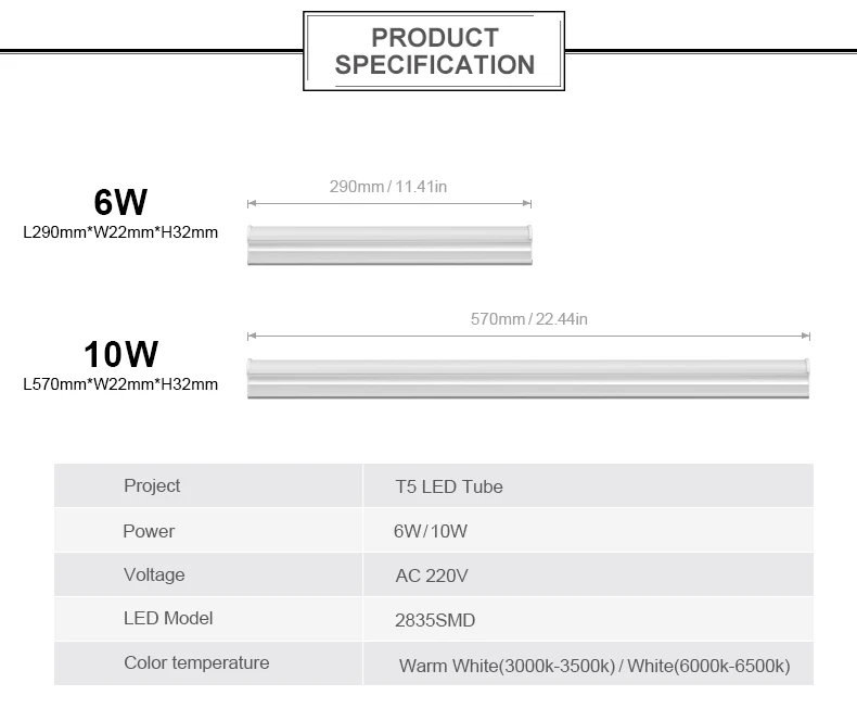 Технические характеристики: Название: светодиодный T5 трубки светильник Напряжение: AC110V-240V Цвет света: белый/теплый белый Мощность: 6 Вт (500лм) / 10 Вт (980лм) Длина: 29 см/57 см CRI(Ra): >80 Тип светодиодов: 2835 (высокий люмен) Материал: алюминий + акрил Особенности: 1. Энергосбережение: До 50% меньше энергопотребления, чем традиционные флуоресцентные трубки. 2. Удобная замена: замена люминесцентной трубки, удобная в использовании и защита. 3. Защита глаз: не мерцает, безвреден для глаз. Применение: Коммерческие магазины, отели, выставочные залы, офисные и другие места, основное внимание, освещение для домашнего интерьера.