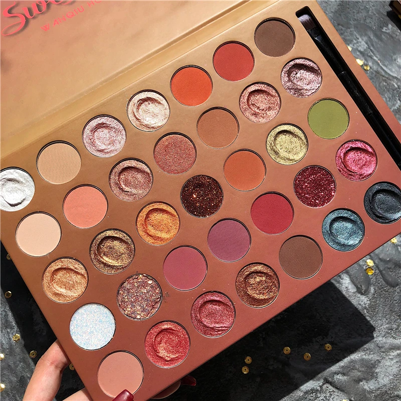 35 цветов мерцающие матовые тени для век Палитра блестящих металлических теней палитра кремовых пигментированных водостойких косметических палитр