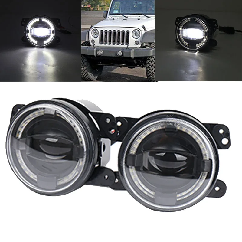 4-дюймосветильник светодиодные противотуманные фары, проходящие Противотуманные фары 30 Вт, линзы проектора DRL Halo для Jeep Wrangler JK TJ LJ Grand Cherokee Lada Offroad