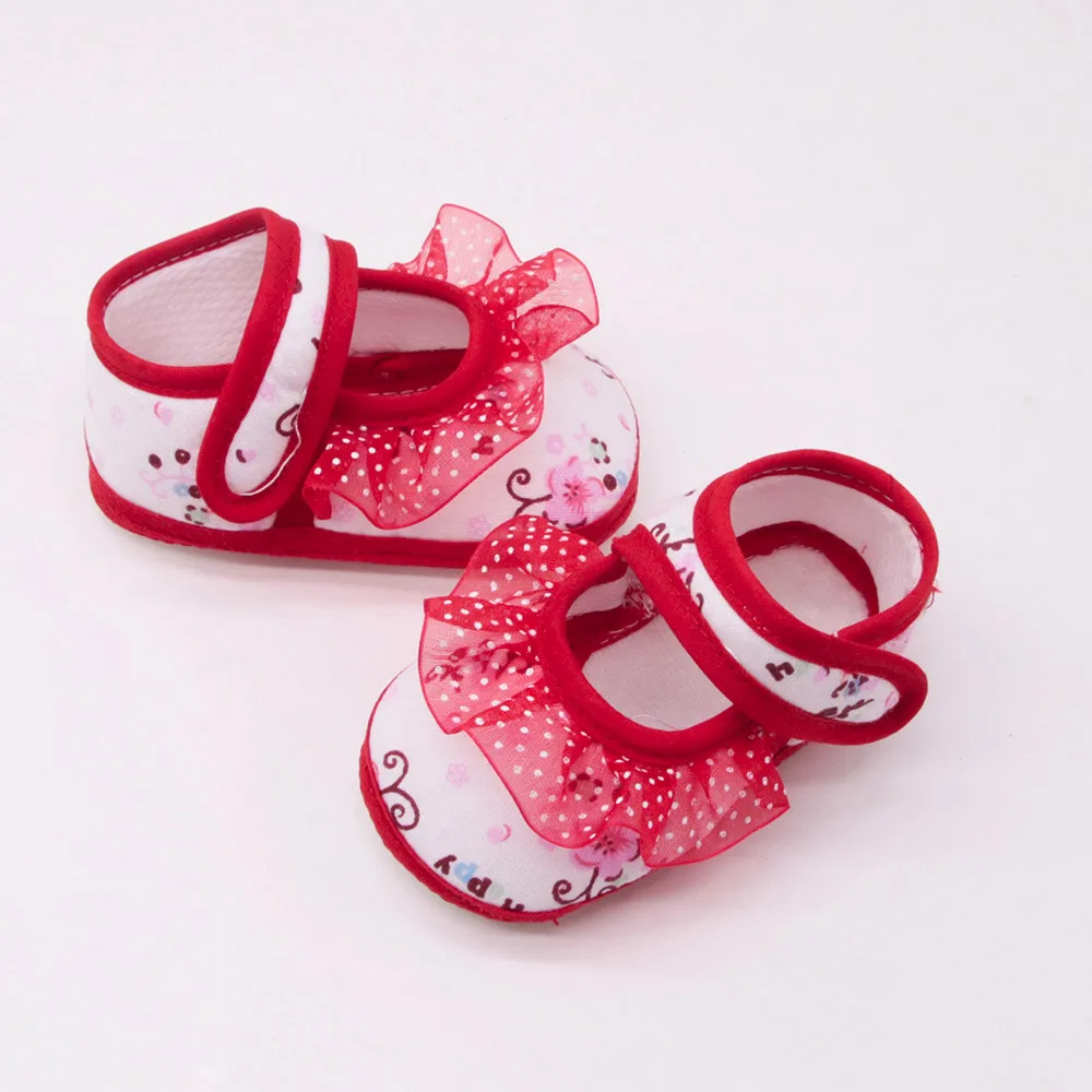 Мягкая обувь для новорожденных девочек; Кружевная обувь с цветочным принтом; Обувь для кроватки
