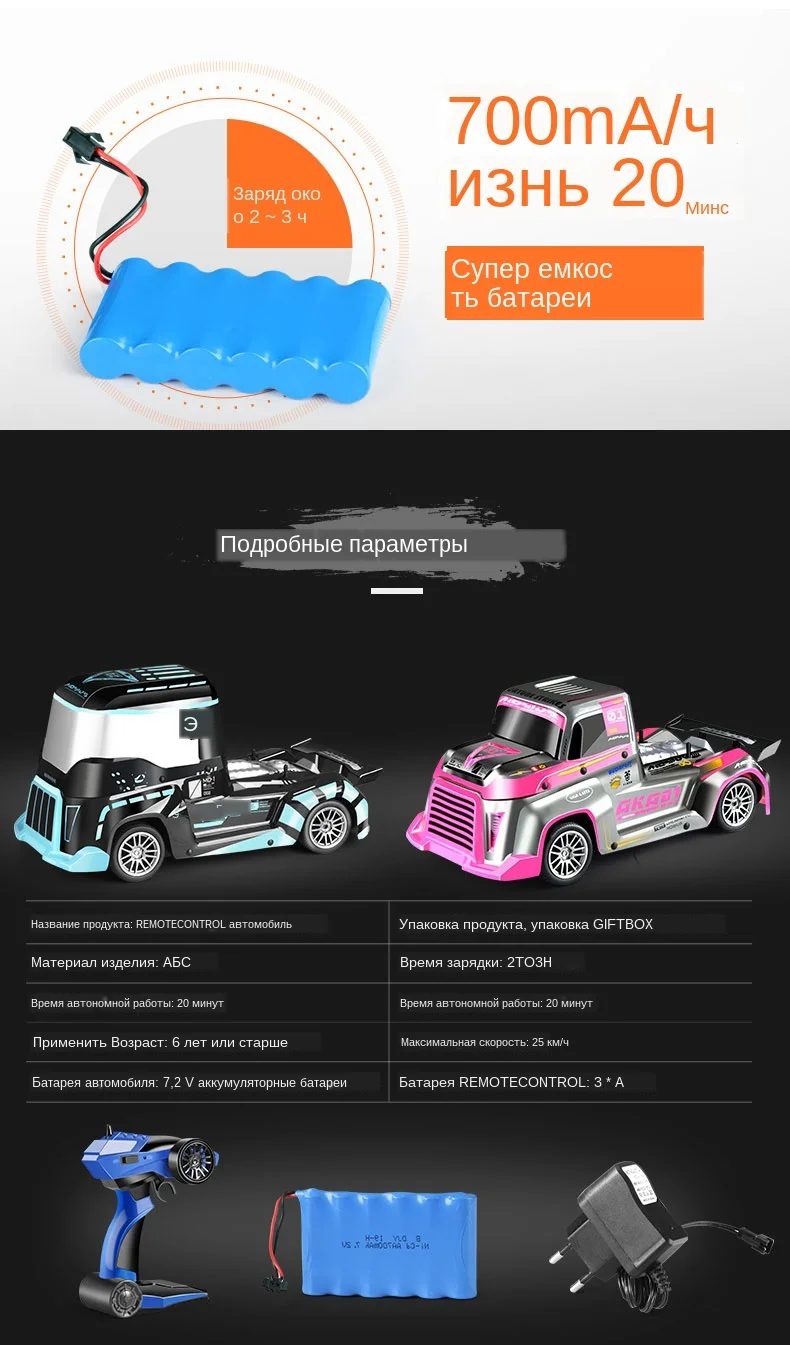 Название продукта: "Тяжелая карта дистанционного управления автомобилем Материал изделия: АБС-пластик Время работы батареи: 20 минут Нанесите Возраст: 6 лет и старше Автомобильный аккумулятор: 7,2 в аккумуляторные батареи Упаковка товара, подарочная упаковка Время зарядки: от 2 до 3 ч Максимальная скорость 25 км/ч Дальность дистанционного управления: 80 метров Батарея дистанционного управления: 3 * AA