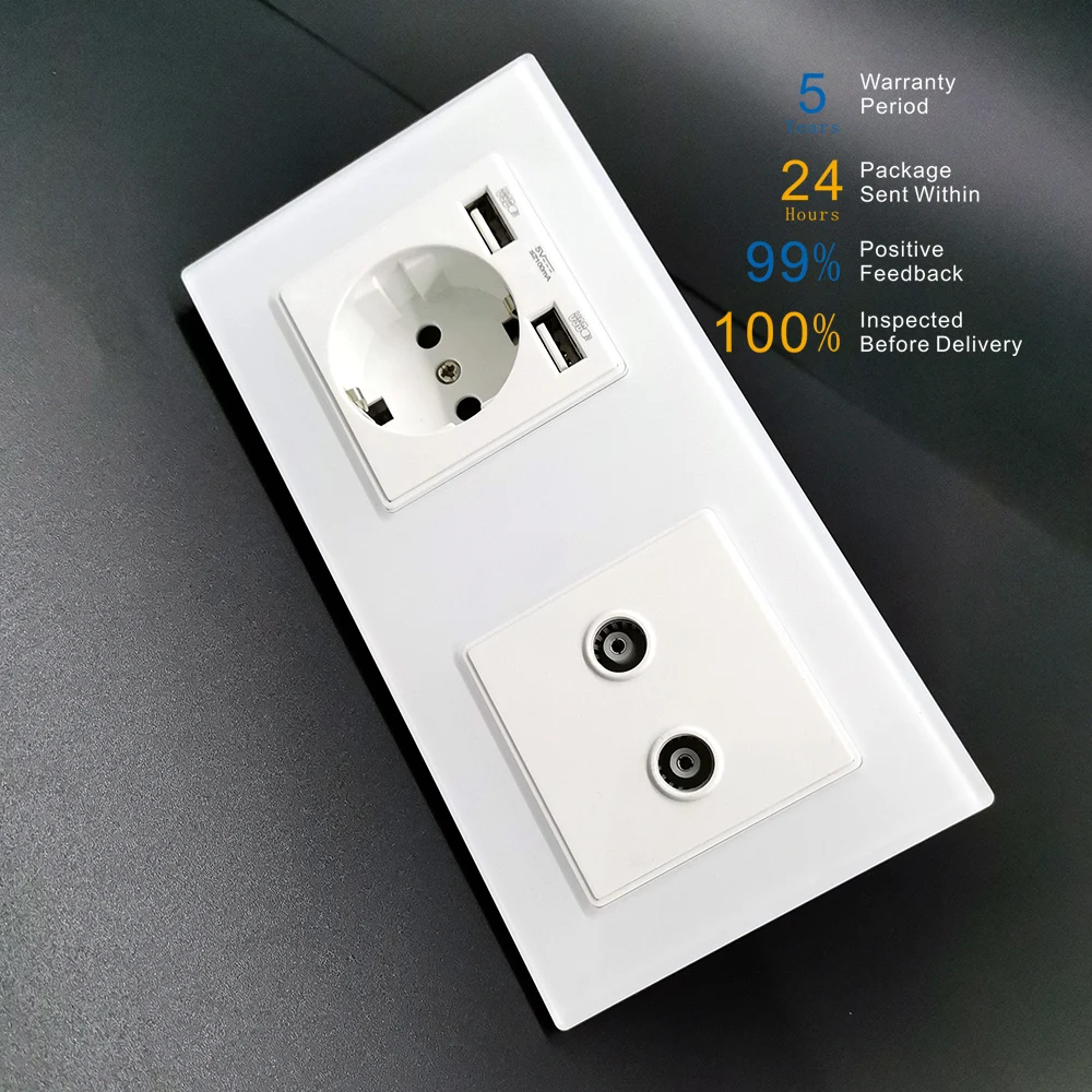 Настенная розетка NOVSKI с usb разъемом 2100mA, розетка для передачи данных с двойным ТВ, стальная панель, 16 А, европейская немецкая штепсельная вилка, электрическая розетка Schuko, 5 лет гарантии