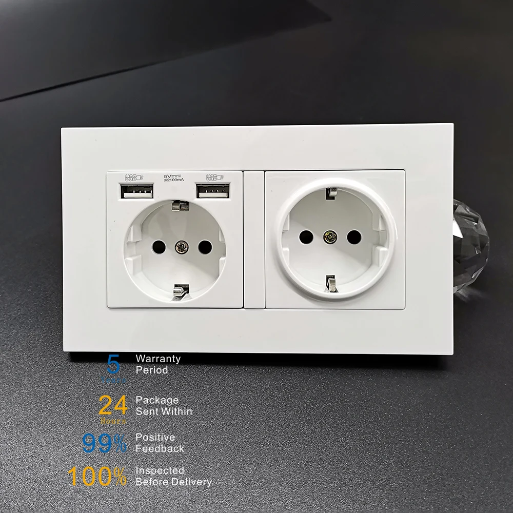NOVSKI 2 кадра настенная розетка USB EU Schuko электрическая розетка PC пластиковая панель с заземлением, немецкая Bayer база, 86*146 мм, 5 лет гарантии