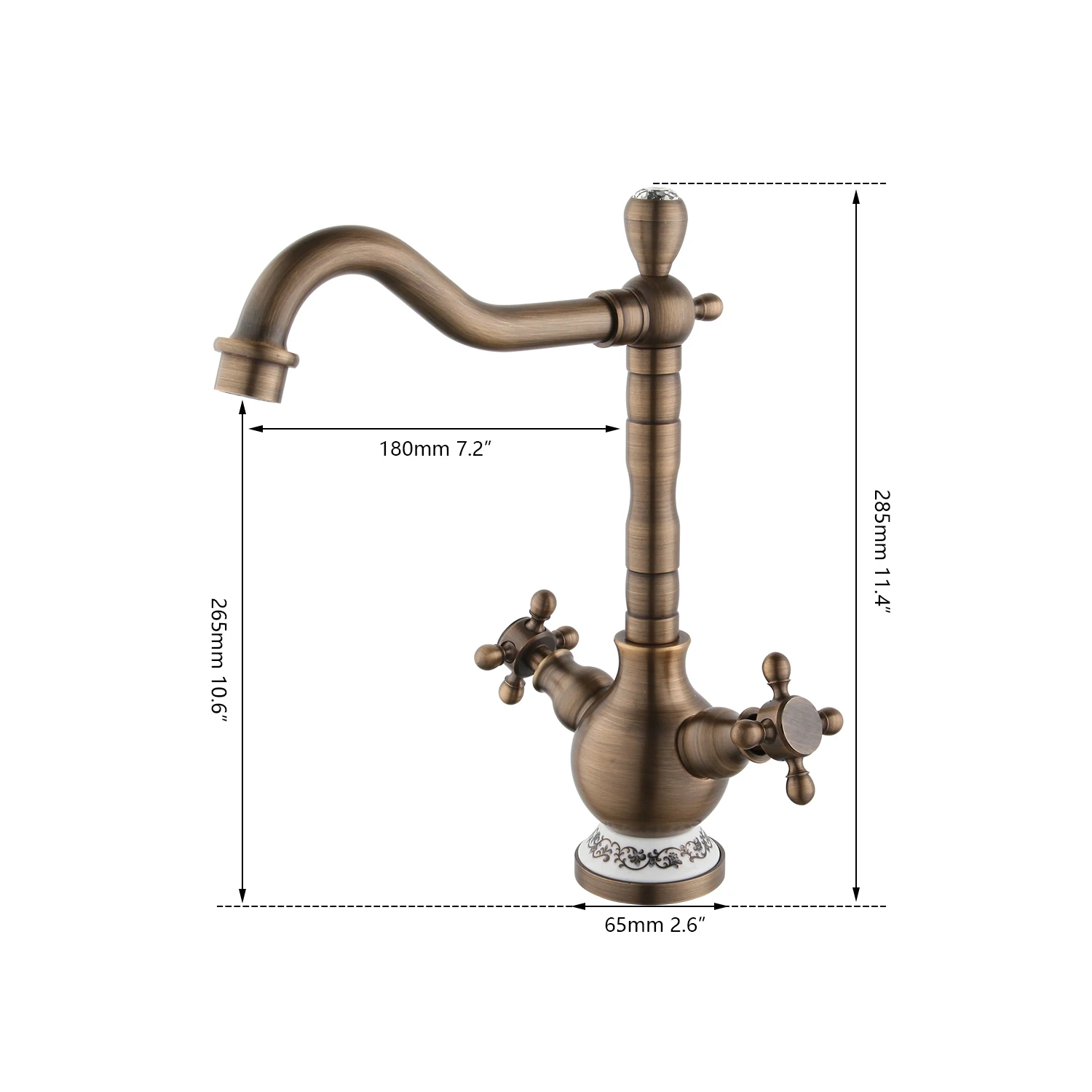 Sleek European inspired modern contemporary Art designLuxury oversized creationKEMAIDIAntique Brass Basin Mixer FaucetPremium quality tempered glass constructionAbove the counter installationChrome pop-up drain included