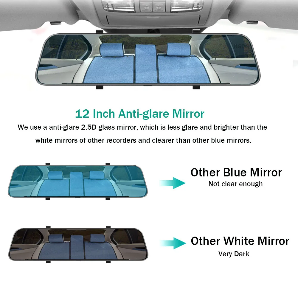 Автомобильный видеорегистратор TAVIN, 12 дюймов, зеркало заднего вида, видеорегистратор, Full HD, сенсорный экран, автомобильная камера 1080P, видеорегистратор с двумя объективами, автомобильный видеорегистратор