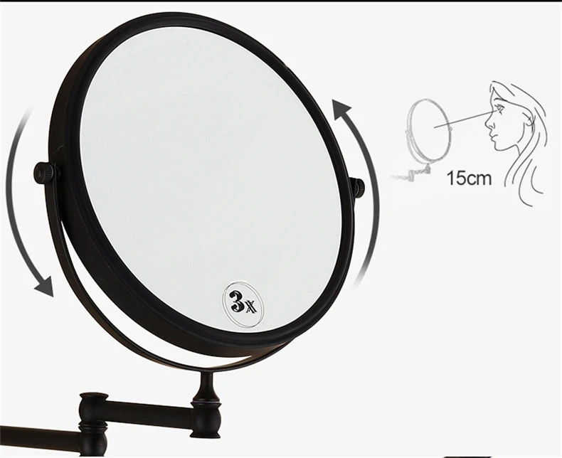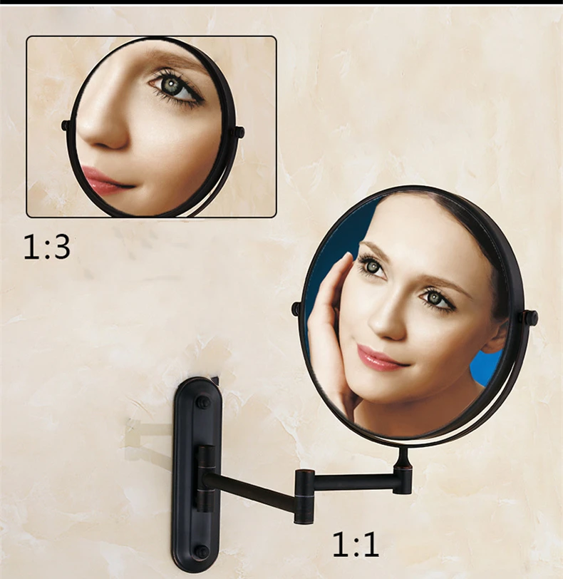 Корпус этого настенного перекидного зеркала изготовлен из меди, которая очень прочна и не ржавеет. Зеркало изготовлено из кварца и хрусталя, который меньше подвержен запотеванию и лучше, чем стекло. Одна сторона является нормальным кратным, а другая-3-кратным увеличением. Вы можете использовать его в соответствии с вашими потребностями.