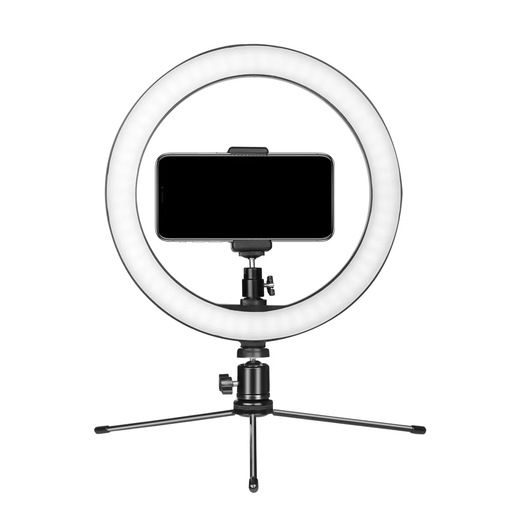 Gemwon 10 ''светодиодный кольцевой светильник с подставкой для штатива и держателем для телефона Прямая трансляция 360 ° угол вращения кольцевой светильник 3 яркость модель