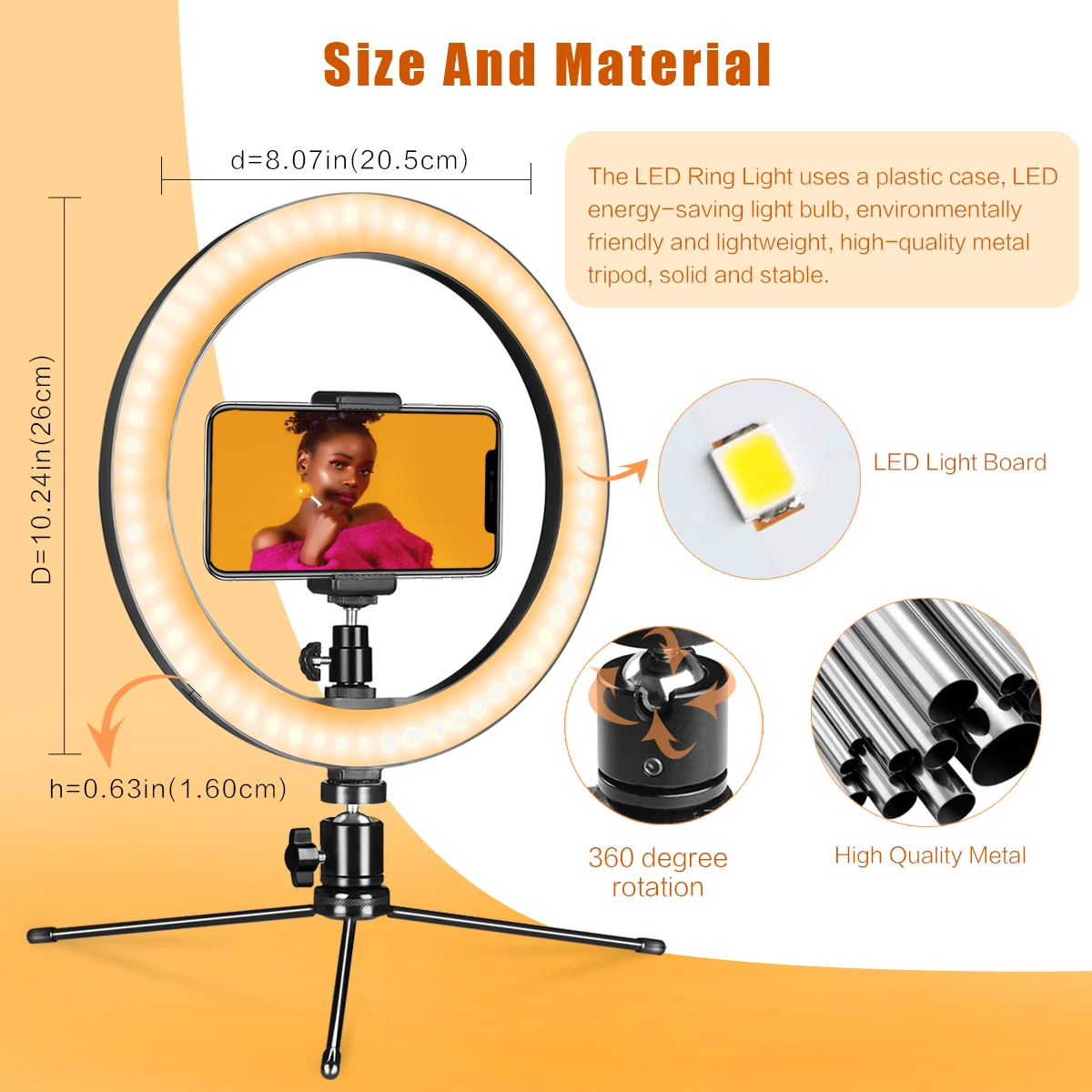 Угол поворота на 360 ° для кольцевой светильник Регулируемый штатив головка позволяет найти самый лучший угол для того, чтобы светильник ваш объект, делает вашу фотографию или livestreaming легко.