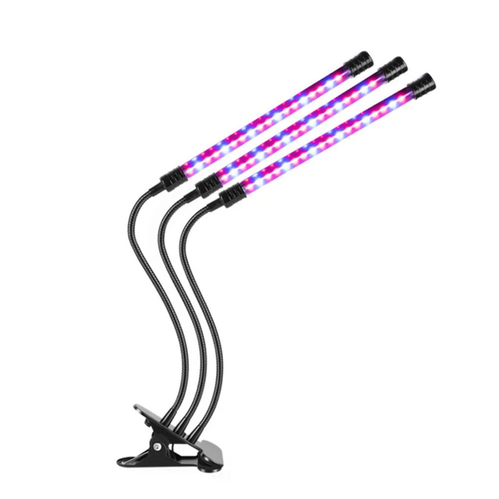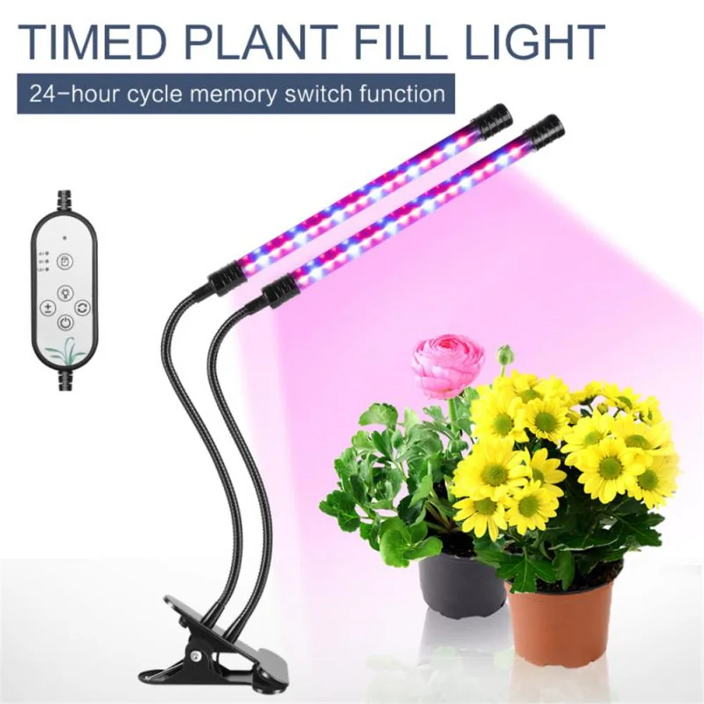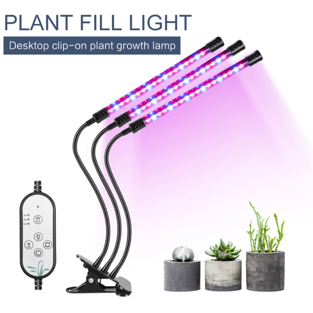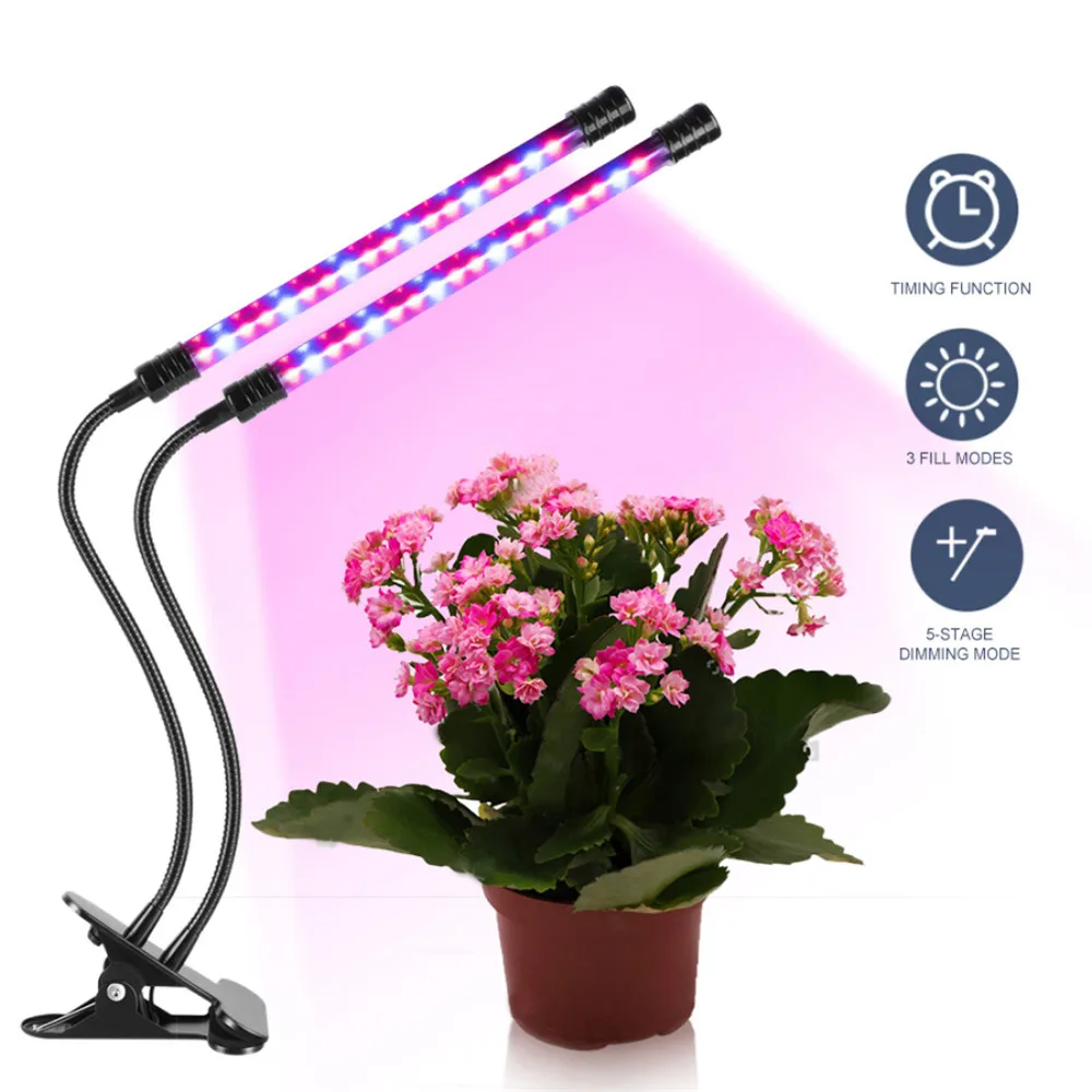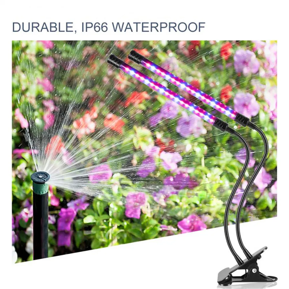 Product Type: LED Grow Light Material: Aluminum & PVC Power: Max 27W Input Voltage: 5V Input Current: 2A Wavelength: (Red: 620-625nm/ Blue: 460-465nm) Working Temperature: -20°~40° Life Time: 50000 hours Lighting Range: 2-3 square meters Suitable Distance from Lamp to Plant: 0.98-3.98 ft Certification: CE ROHS FCC PSE WEEE Please carefully there is no USB adapter in this product,please prepare the USB adapter by yourself. Feature: Dual-timer, you only need to set the timer just once. 3 timer modes - 4 hours, 8 hours and 12 hours. 5 Dimmable Luminance Modes 3 options to choose the lighting quantity and Red/Blue-Ray switch. Made of Aluminum & PVC, lightweight and durable with good heat dissipation. Low Consumption and Environment Friendly. IP66 waterproof, no need to turn it off when watering the plants. 360° flexible goosenecks make it able to adjust any direction or the lighting area. With an adjustable clip which max to 2.5 inch for you to fix it on most place stably. BLUE LIGHT influences the formation of chlorophyll, enabling the plant to intake more energy. Plants that receive plenty of blue light grow with strong, healthy stems and leaves. This process is called photomorphogenesis. RED LIGHT contributes to the optimal development. It's essential to a plant's early life for seed germination, root growth, and bulb development. It also makes the plant yield better results when flowering.