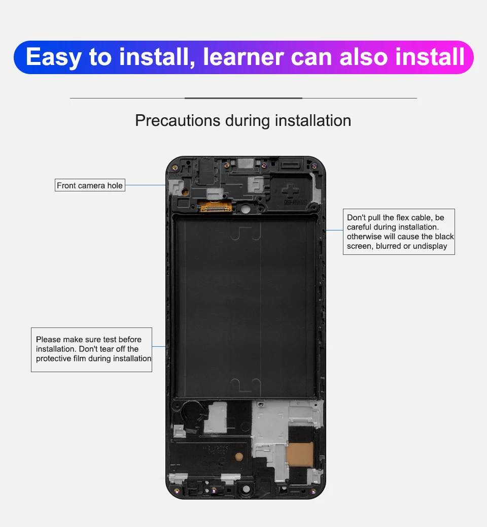 Примечание перед установкой:1: перед установкой экрана, пожалуйста, удалите батарею, чтобы машина перешла в спячку, это гарантирует, что данные будут записаны на новый экран.2: во время установки, пожалуйста, внимательно нажмите на экран, экран хрупкий, не отрывайте защитную пленку во время установки3: Очистите гибкий кабель спиртом перед установкой и подключите его хорошо перед тестированием работы экрана4: Не тяните гибкий кабель, будьте осторожны во время установки, в противном случае это вызовет черный экран, размытый или размытый5: Если вы пытаетесь установить экран в первый раз, мы рекомендуем обратиться к профессиональному специалисту, чтобы помочь вам установить экран.
