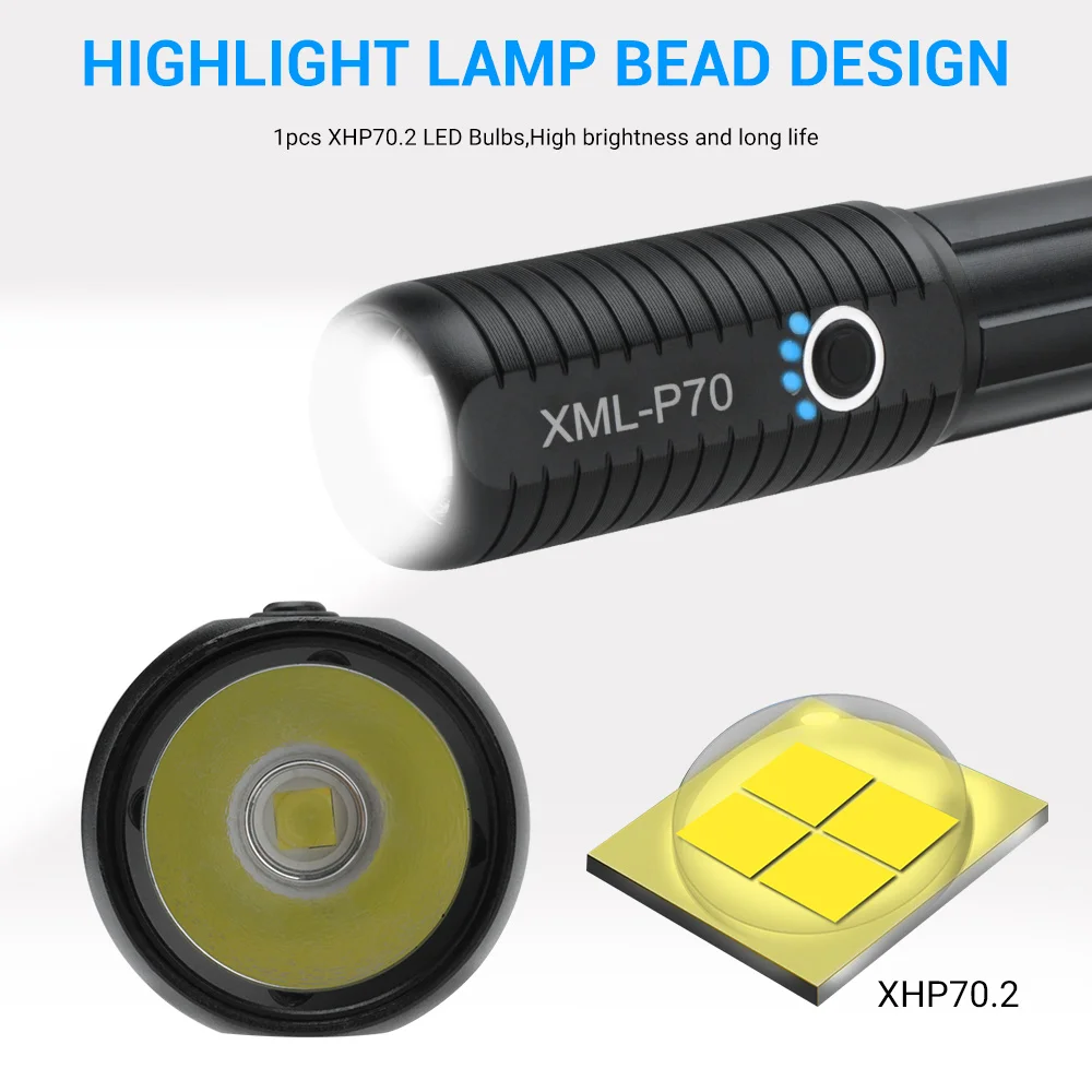 Название продукта: Мощный фонарик BORUiT W557 Материал: Алюминий из алюминиевого сплава Тип LED светодиода: 1 шт. оригинальный XHP70 светодиодный Яркость: 4000 люмен Режимы: Яркий--Средне-слабый----Стробоскоп--SOS Тип батареи: 1*18650/26650 Батарея Водонепроницаемость: IPX6 Дальность света: Максимально 500 метров Специальная функция: Мощность Дисплей