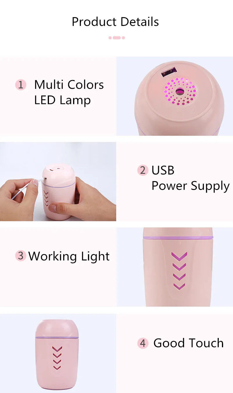 Функции:Увлажнение, очиститель воздуха, светодиодный светодиодной лампой Mini USB, с вентилятором Mini USB