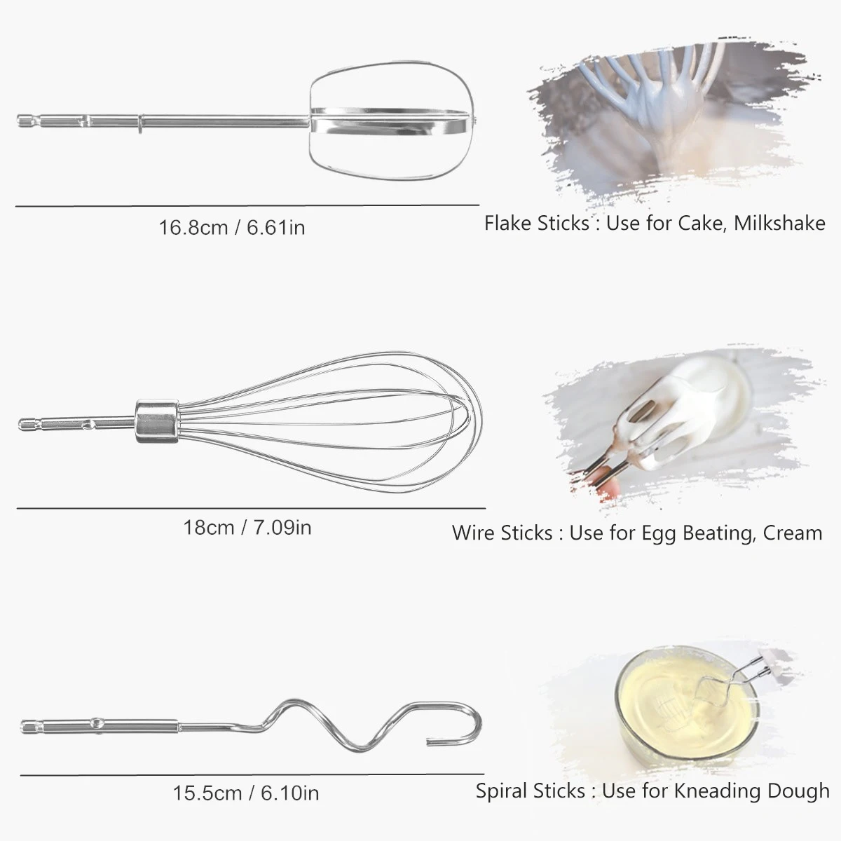 Спецификация Мощность: 300 Вт Напряжение: 220 В Скорость: 5 скоростей Аксессуары: 6 палочки (2 * Нержавеющая сталь 12-провод колотушки, 2 * Нержавеющая сталь кукурузных хлопьев колотушки, 2 * Нержавеющая сталь Спиральный Миксер) Особенности · Многофункциональный, используется для взбивания яиц, смешивания крема/масла, разминания теста · Оснащен 6 палочками для различных функций · Дизайн корпуса Unity, легко хранить · Мощный двигатель, работает с более высокой эффективностью · 5 скоростей регулируется, контролируя результаты с большей точностью · Стимулирование разминания теста вручную, приносит вам лучший вкус · Пищевая нержавеющая сталь, прочная и безопасная