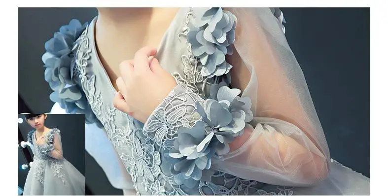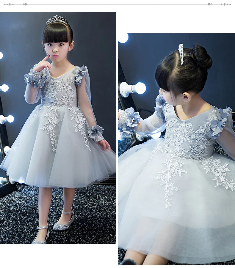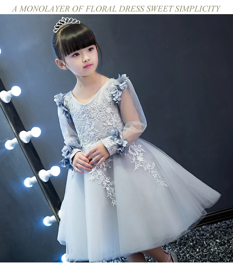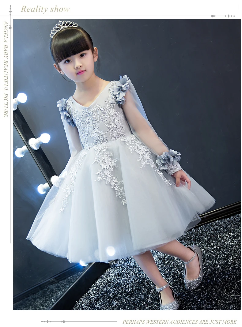 Серебряное платье с фатиновой юбкой для маленьких девочек на свадьбу, с аппликацией в виде цветка, для маленьких девочек, для крещения, детское платье принцессы для вечеринки, дня рождения, платья От 1 до 12 лет