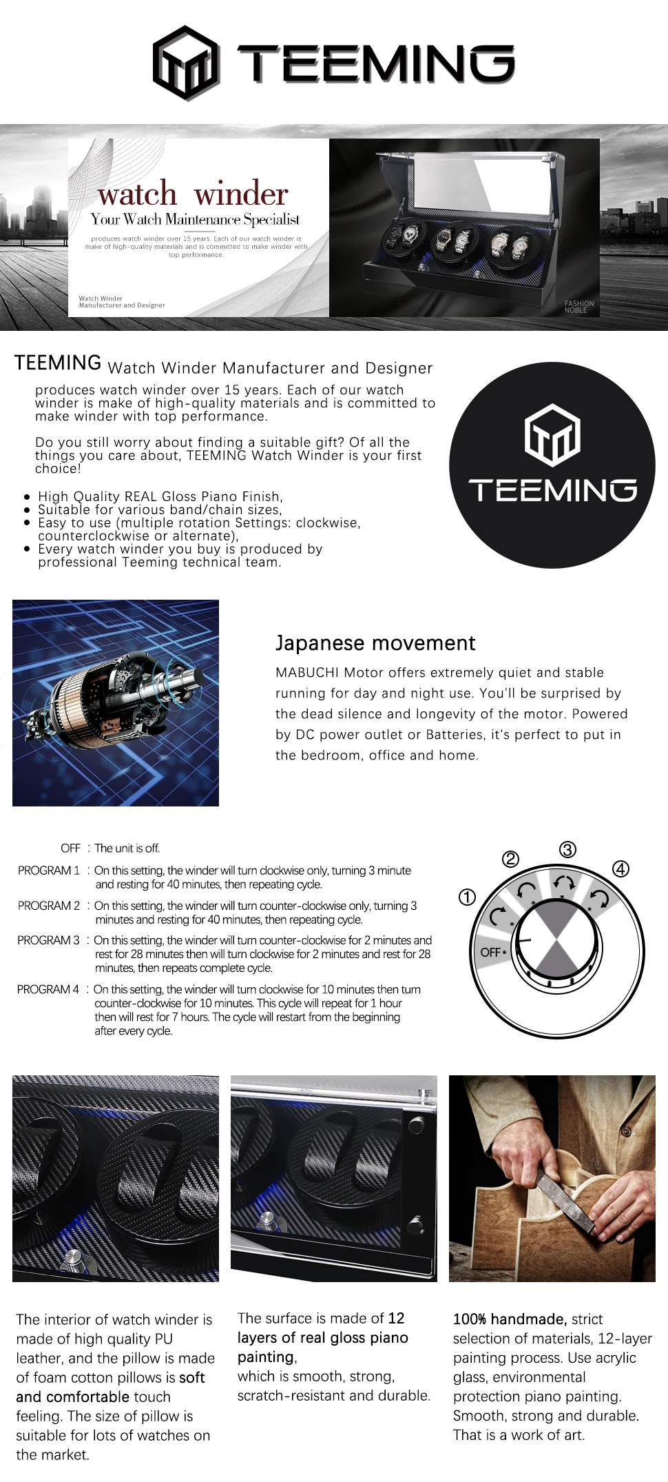 MUZHIYUN производитель и дизайнер часов Производит намотку часов более 15 лет. Каждый из наших часов намотки изготовлены из высококачественных материалов и стремится сделать намотку с максимальной производительностью. Вы все еще беспокоитесь о том, чтобы найти подходящий подарок? Все, о чем вы заботитесь, MUZHIYUN Watch Winder-ваш первый выбор! * Высокое качество, настоящий блеск для фортепиано, * Подходит для различных размеров браслетов/цепей, * Простота в использовании (несколько настроек вращения: по часовой стрелке, Против часовой стрелки или чередования), * Каждая намотка часов, которую вы покупаете, производится Профессиональная техническая команда MUZHIYUN.