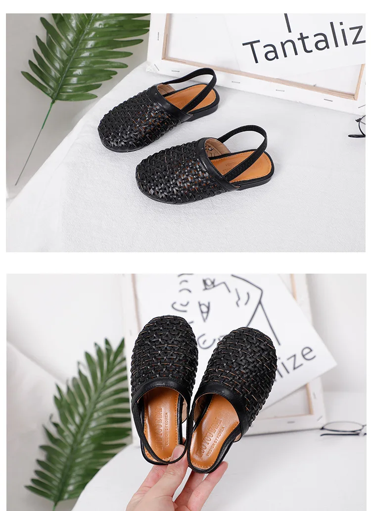 Весенние детские плетеные тапочки; Шлепанцы принцессы для маленьких девочек; Детская черная Брендовая обувь; Мягкие милые тапочки для малышей; Пляжные шлепанцы; 2020