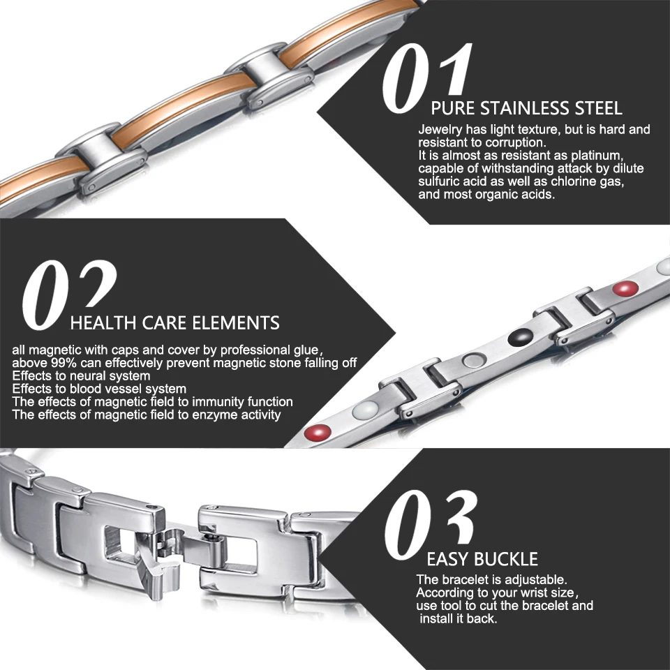 Женские деловые браслеты из нержавеющей стали WelMag, черный цвет с элементами для здоровья, женский браслет