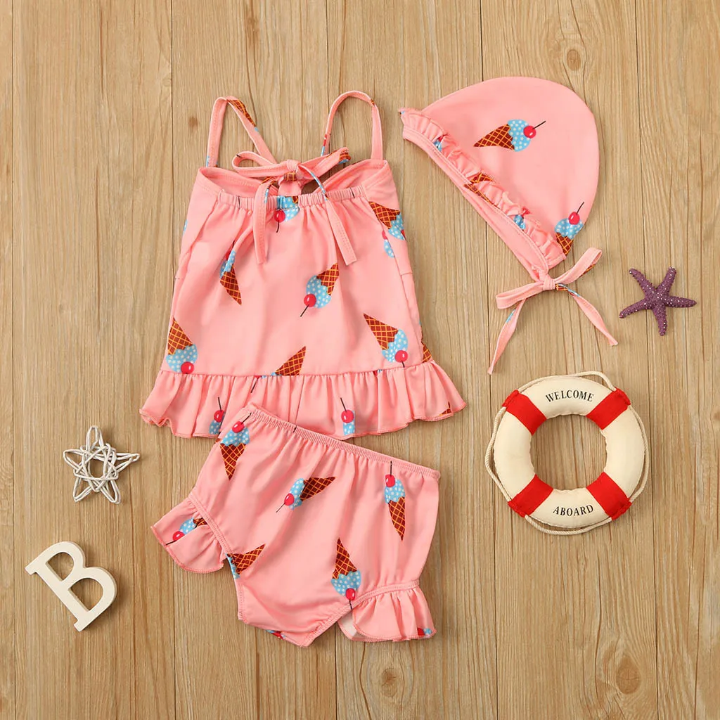 Купальный костюм с принтом мороженого для новорожденных, купальник-бикини для маленьких девочек, летние шорты, шапочка, наряды, пляжная одежда для малышей, Fatos De Banho