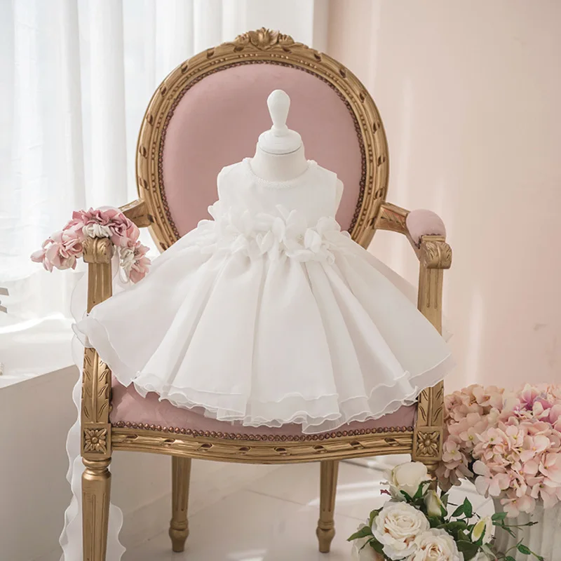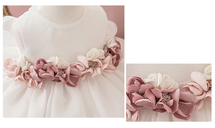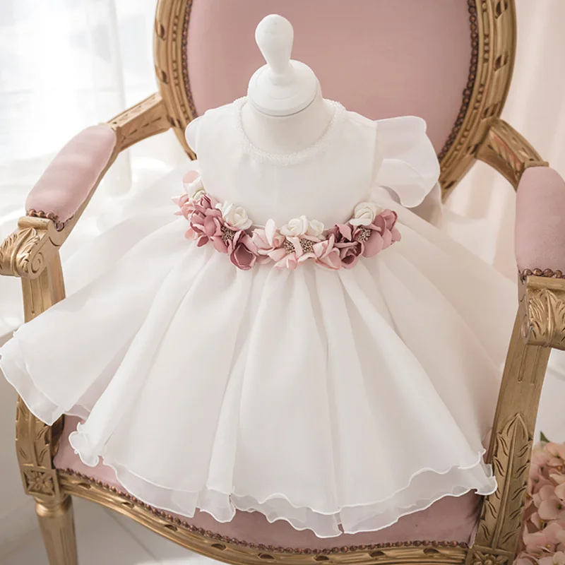 Детское платье на 1-й день рождения для девочек, белое платье с цветами для девочек на свадьбу, вечеринку, банкет, первую вечеринку, платье с цветами