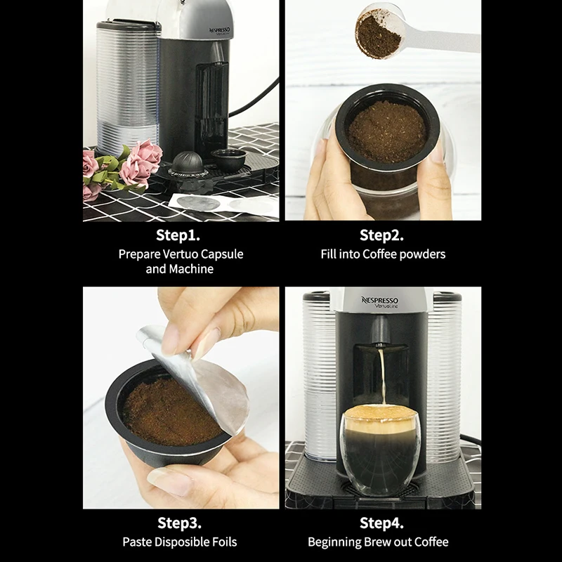 * 5 шт многоразового использования наполнение кофе капсулы W/Алюминиевая фольгаДля Nespresso Vertuo