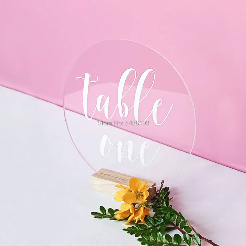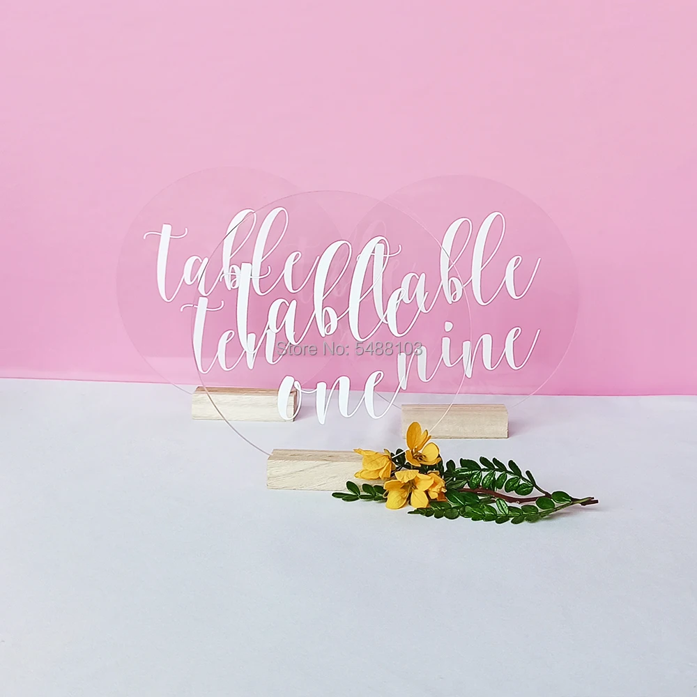 Personalized Acrylic table number with wood holder set