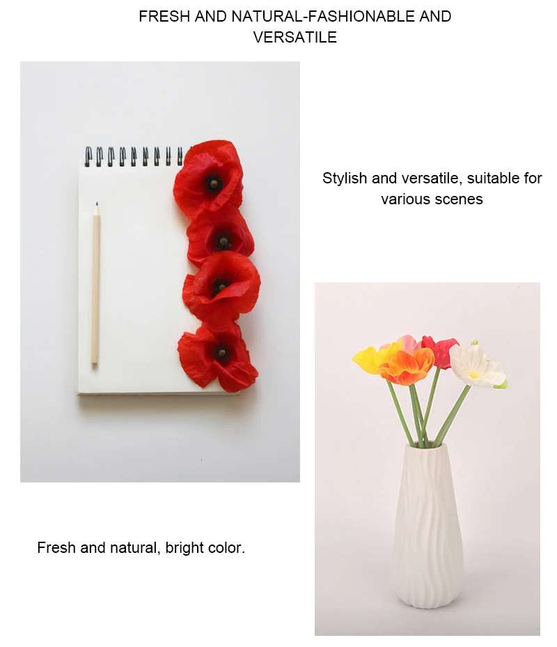 Название: кукурузный цветок мака Цвет: 6 цветов, s Материал: приклеенный пластиковый цветок из полиуретана + пластиковый стержень для цветов Размер: Общая длина около 33 см Примечание: диаметр цветка-7 см; Каждая Цветочная головка (измеряется вручную, погрешность составляет около 2 см) Совет: во время транспортировки ветки и бутоны цветов появятся в тисненом виде, или листья слегка отпадут. Это нормально. Вы можете использовать свою руку, чтобы разгладить его, вставить цветок, и он, естественно, вернет его в оригинальное состояние через несколько дней. Не волнуйтесь. Пожалуйста, внимательно прочитайте детали и Размеры изделия перед покупкой, чтобы избежать недопонимание из-за разницы между воображением и реальной вещью. Мы не принимаем случайных расценок от среднего до низкого, надеемся на понимание! Спасибо ~