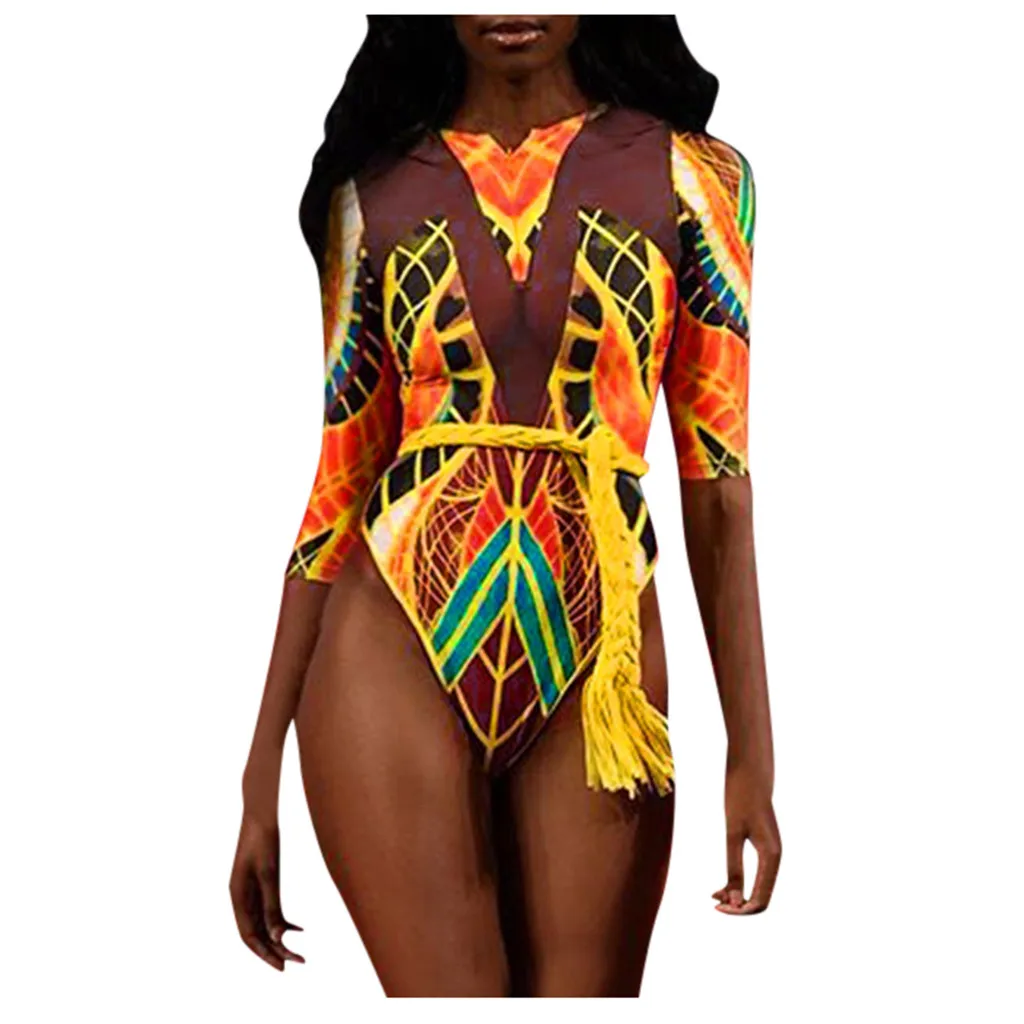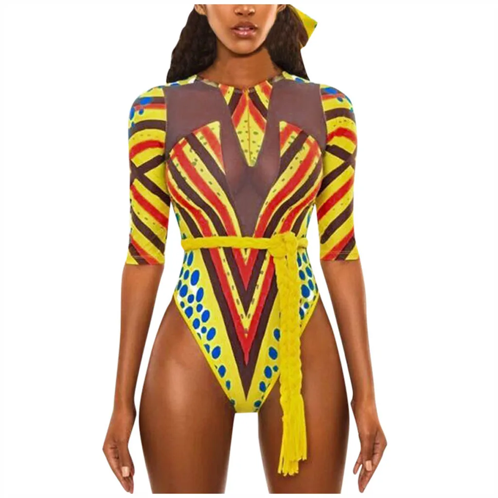 Женский слитный купальник с принтом в африканском стиле, купальный костюм с бюстгальтером с пуш-апом, пляжная одежда
