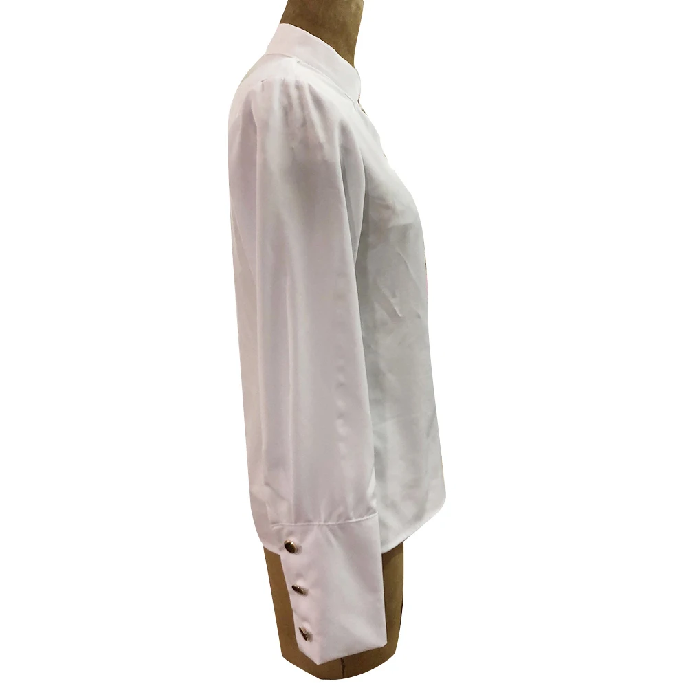 Офисная Женская однотонная блузка с длинным рукавом и воротником-стойкой, рубашка с манжетами на пуговицах