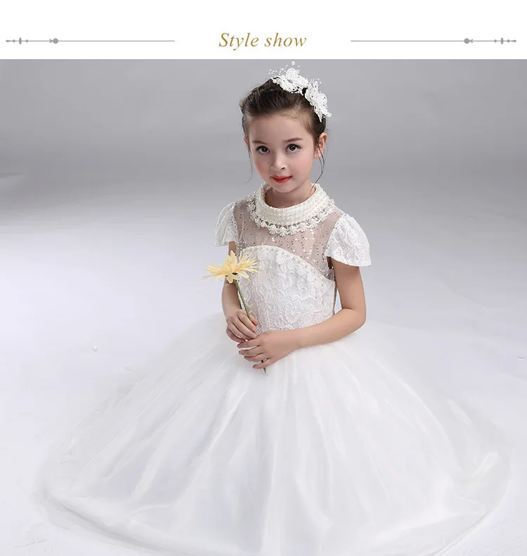 Дворец для девочек кружевное длинное платье с бусинами для От 5 до 12 лет, детское свадебное платье, платье для выпускного вечера с блестками, для детей и подростков; Сатиновое платье вечерние платья