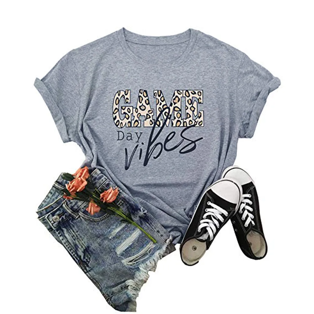 Модная женская леопардовая футболка с коротким рукавом и буквенным принтом, летние базовые Топы