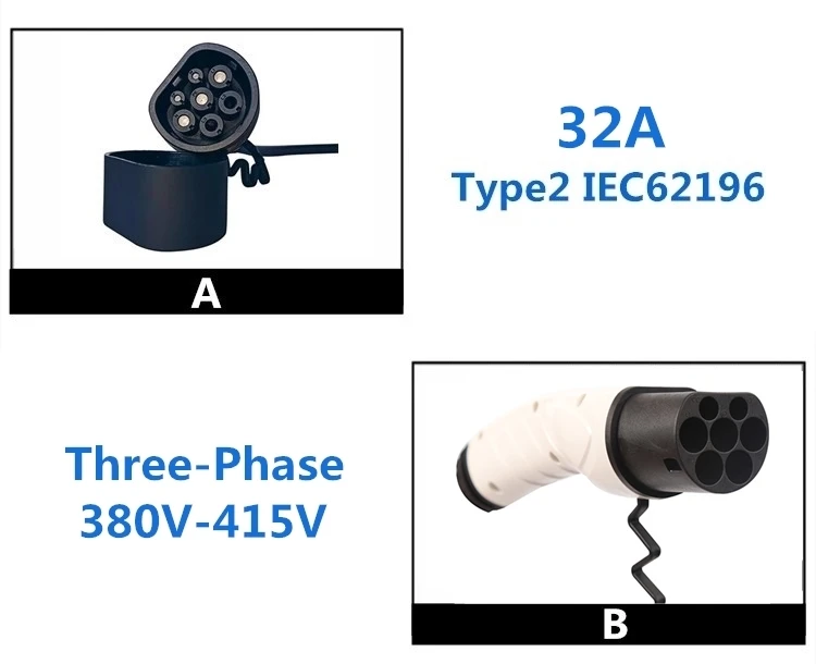 Информация о продукте: • Модель: IEC 62196-2 • Изделие: Тип 2-Тип 2 • Ток зарядки: 32A • Входное напряжение: трехфазный 380-415 В • Рабочая температура: -30 °C ~ + 50 °C • Длина кабеля: 5 м