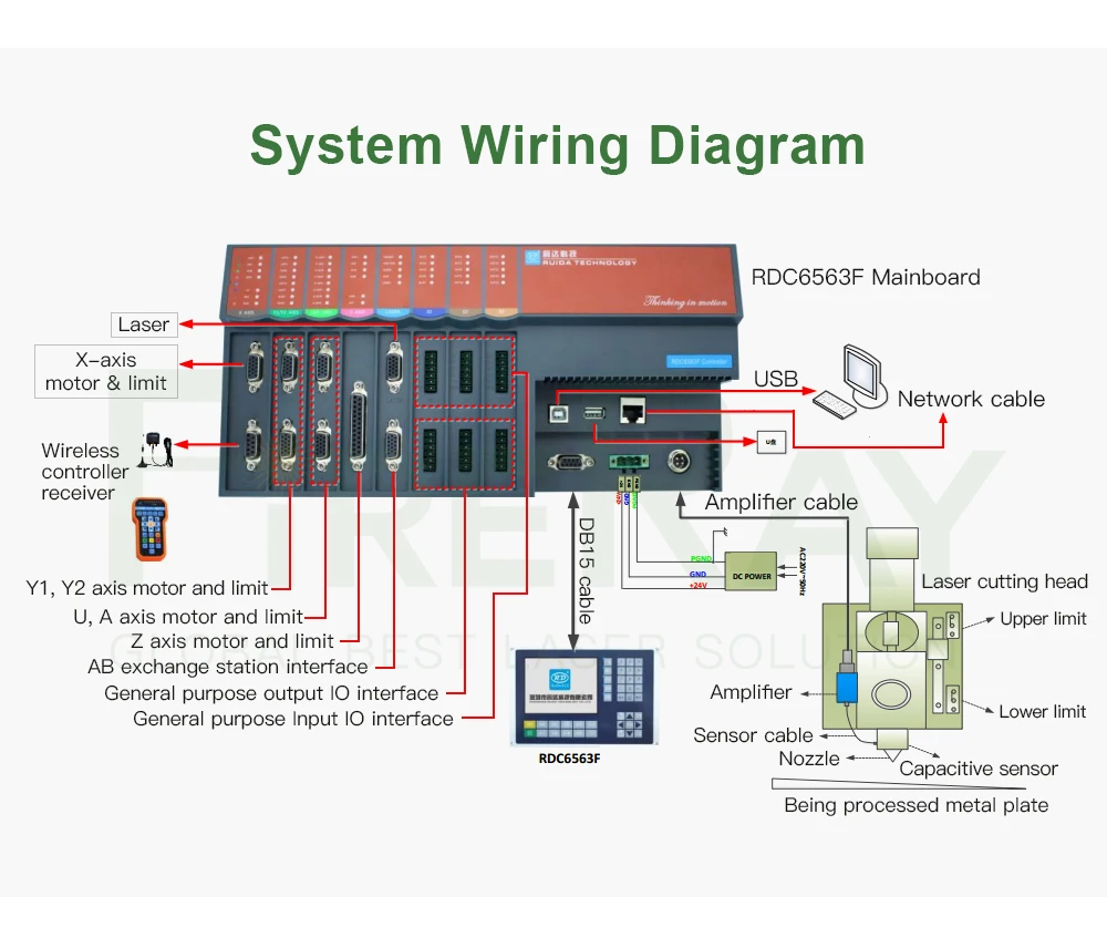 RDC6563F автономная система управления резкой волокон-это система управления резкой волокон, разработанная независимо от технологии Ruida. Система управления имеет лучшую аппаратную стабильность и имеет лучшие анти-высоковольтные и антистатические характеристики. Операционная система на базе LINUX man-machine имеет более дружественный интерфейс работы и более мощные функции. Контроллер включает в себя более полные и отличные функции управления движением, хранение файлов большой емкости, более совместимый драйвер u-диска, многоканальное общее/специальное управление IO, интегрированную выделенную систему времени, алгоритм аппаратного шифрования и ПК Поддержка связи Ethernet и USB связи являются дополнительными.