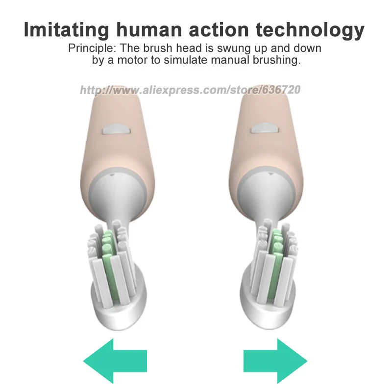 Головка кисти имитирует движение человеческого тела и чистит его зубы. Более эффективно, чем обычные ультразвуковые зубные щетки, с уникальными головками щетки он обеспечивает до 5 раз поверхностный контакт и до 20 раз больше удаления зубного налета вдоль линии резинки и между зубами. По мере того, как кисть движется вдоль линии резинки, она более эффективно удаляет пятна от зубов