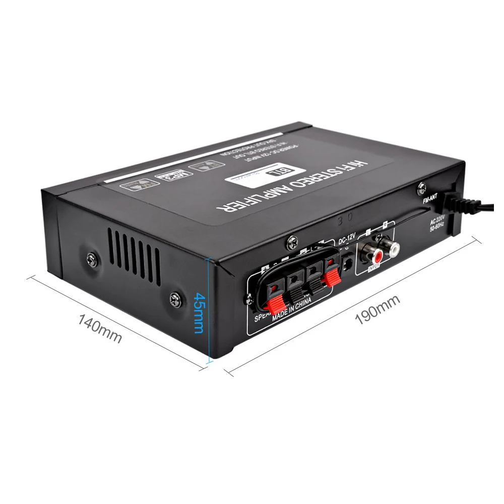 The Hi-Fi stereo amplifier amplifies music to give a Hi-Fi music with stereo surrounding sound. Make you feel you are at the music world.