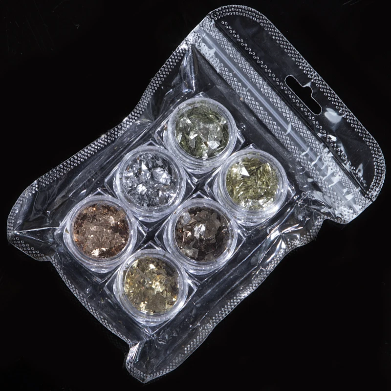 6 шт./компл. голографические Блестки для ногтей порошок хлопья золотые серебряные смешанные зеркальные блестки дизайн ногтей украшения для дизайна ногтей