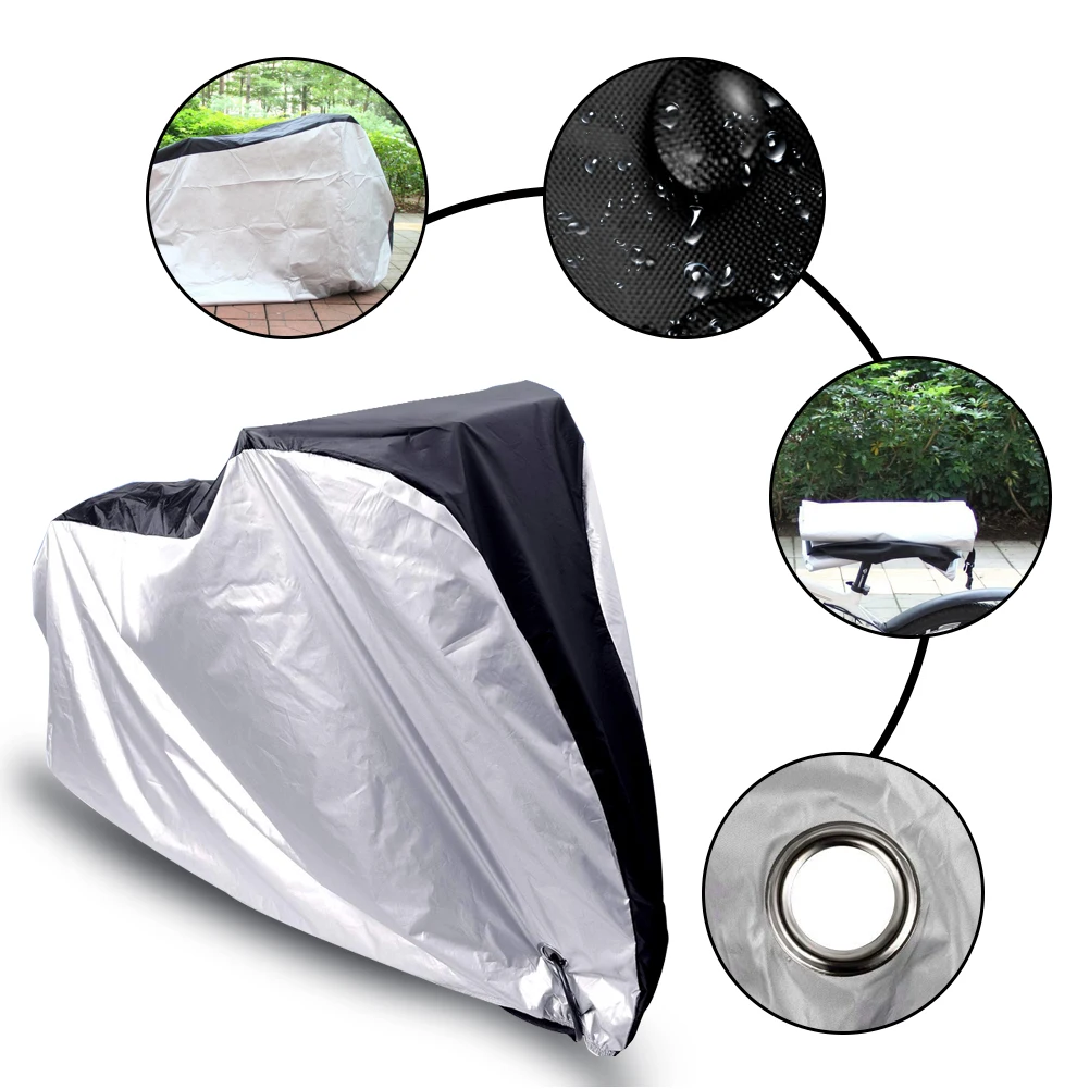 * 2. Особенности безопасности: чехол для велосипеда оснащен эластичным низом с двойным разрезом и крепится ремнем безопасности, чтобы гарантировать, что он не будет выдуваться даже в ветреные дни. На передней панели имеется противокражная Замочная скважина из алюминиевого сплава для блокировки велосипедного покрытия на велосипед для предотвращения ветра и кражи.