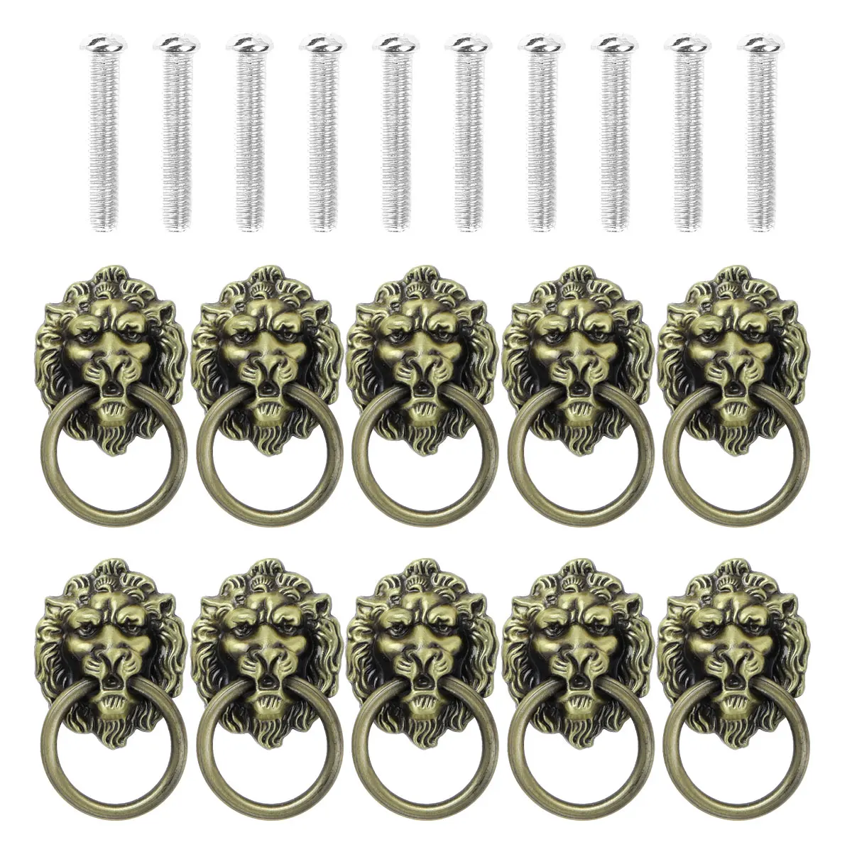10 шт. антикварная ручка с головой льва, дверная ручка с крепежными винтами.
