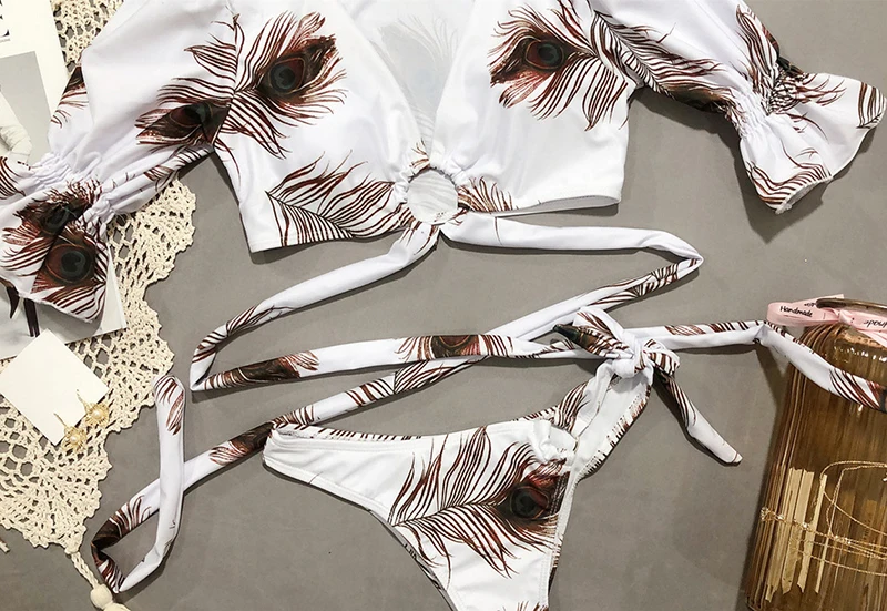 Ретро бикини купальник из двух частей пуш-ап бикини с низкой талией бандажный женский купальный костюм с оборками с коротким рукавом