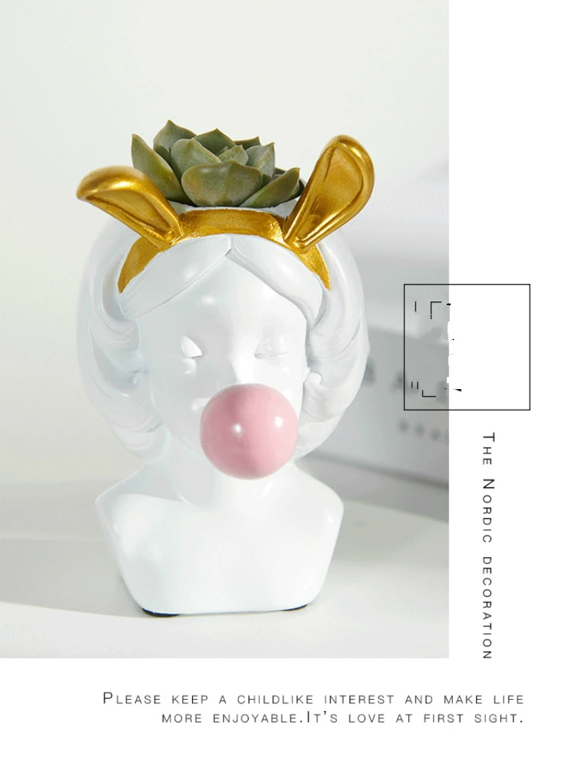 Скандинавский маленький цветочный горшок Милая голова портрет скульптура сочные растения горшок украшение для дома, сада